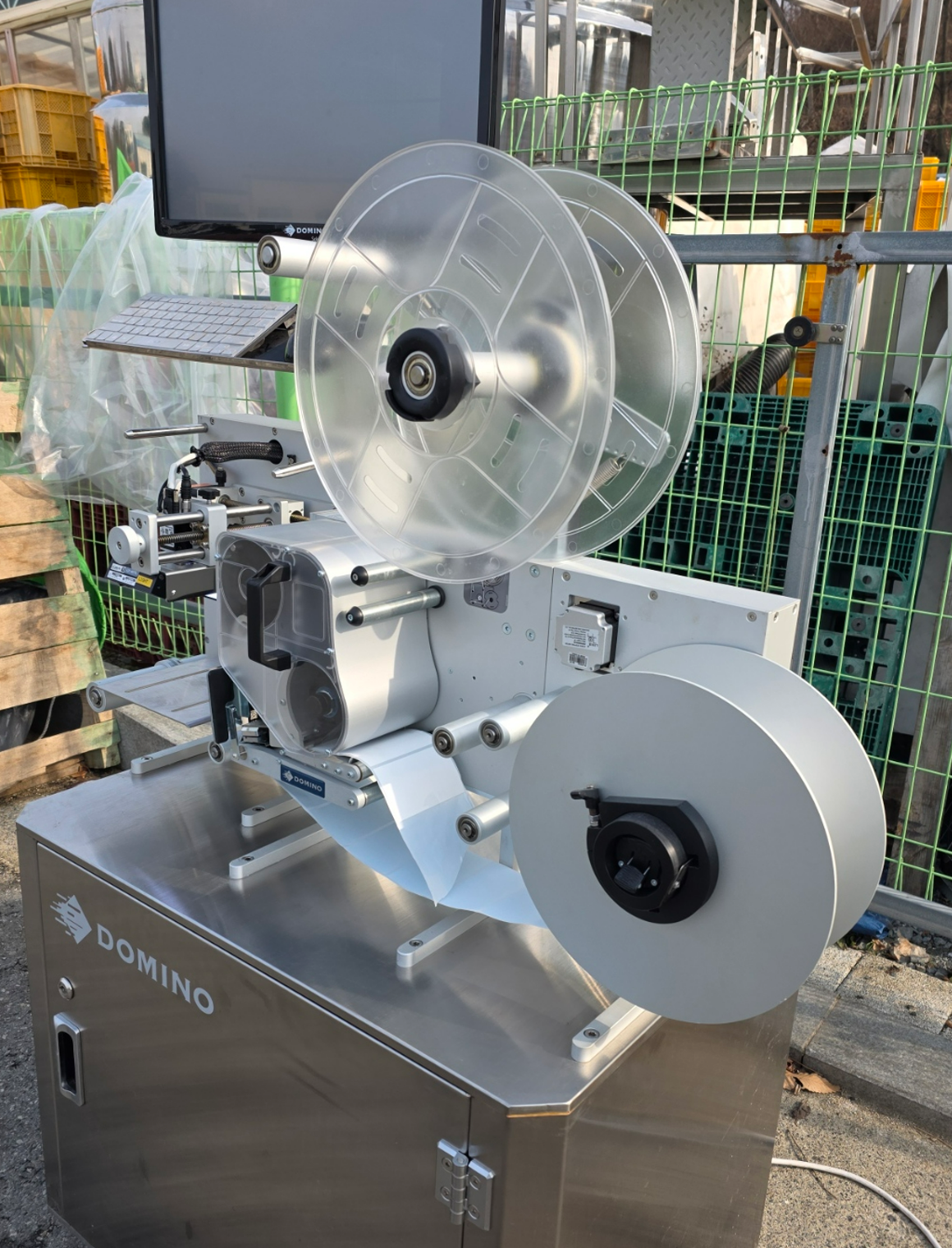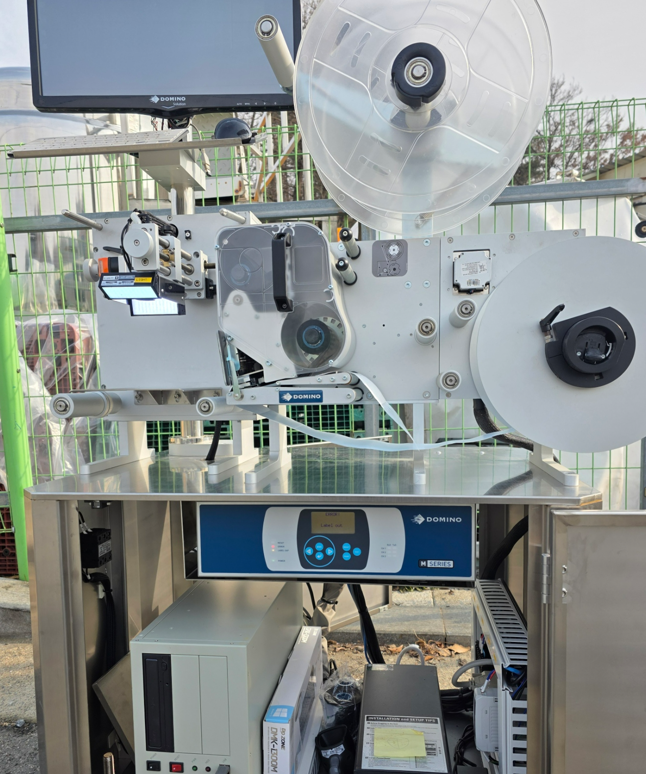 중고 자동라벨인쇄기, 라벨인쇄기, UDI라벨링기, 도미노DLP-1500, 라벨프린터기