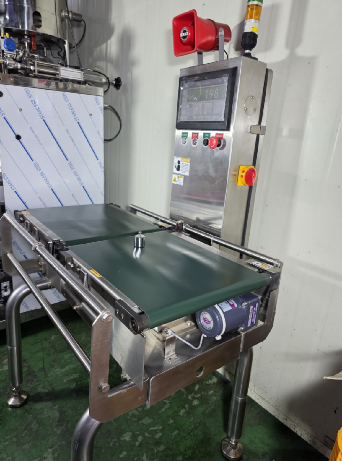 4. 중량측정기사이즈: 970*780*1500mm, 프레임:스텐304/ 벨트사이즈: 폭(350mm)