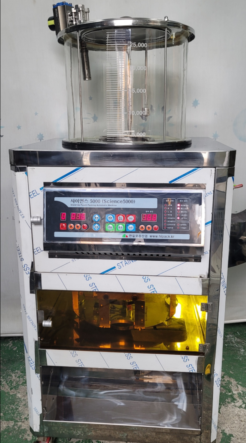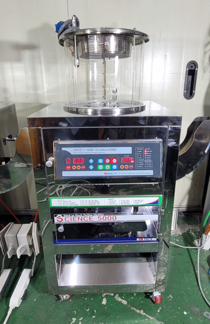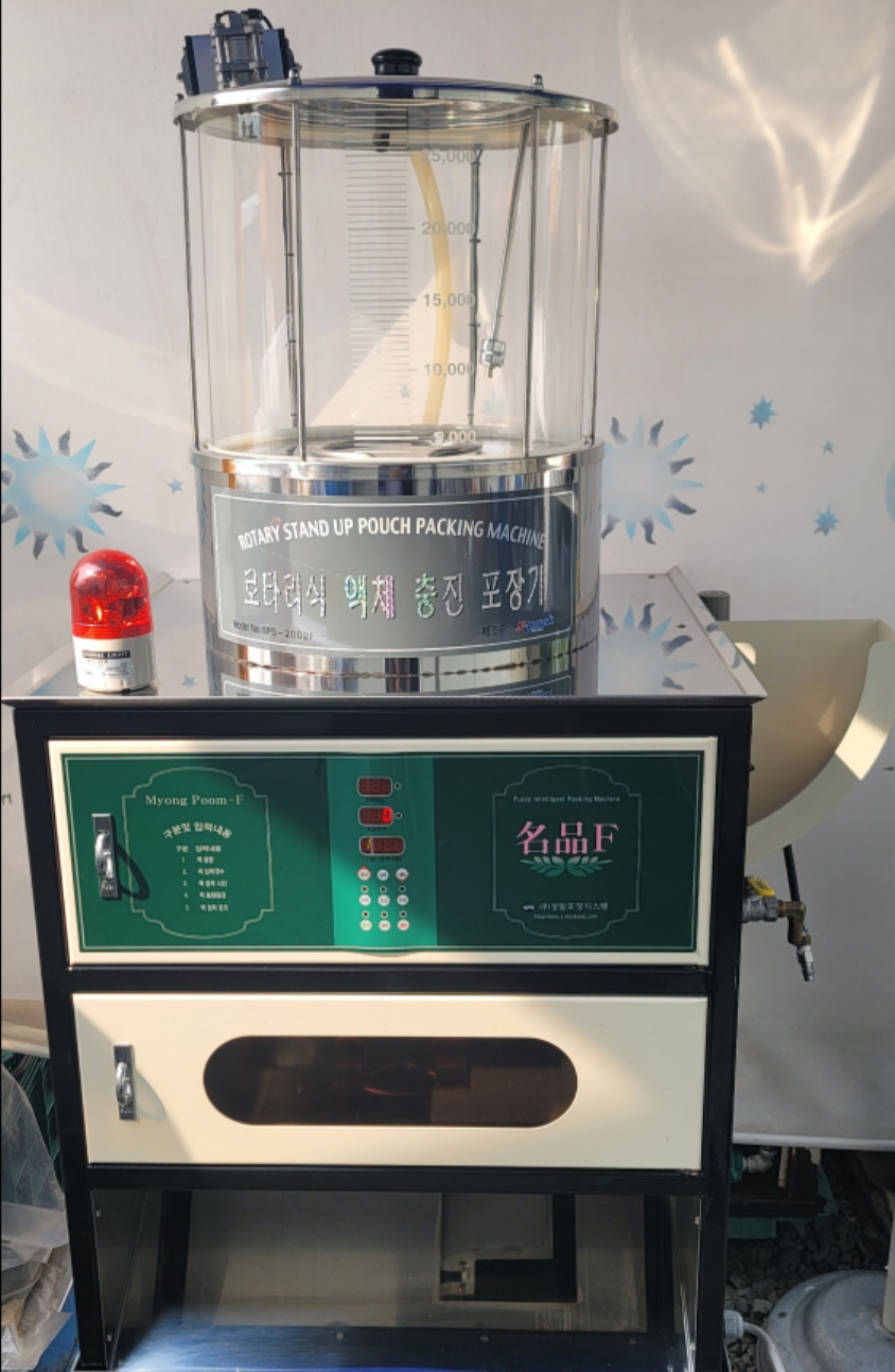 제품설명:사용하지않은 신품급으로 3대있으며 일괄구매시 네고가능합니다. 2중,3중지알루미늄재질의 스탠드타입파우치를 포장하는 최고급형 공압식 스탠딩포장이며, 공압식구동방식으로 콤프레샤가 필요함. 정량주입장치로 정확한 충진용량으로 편차 및 오차가 적음.