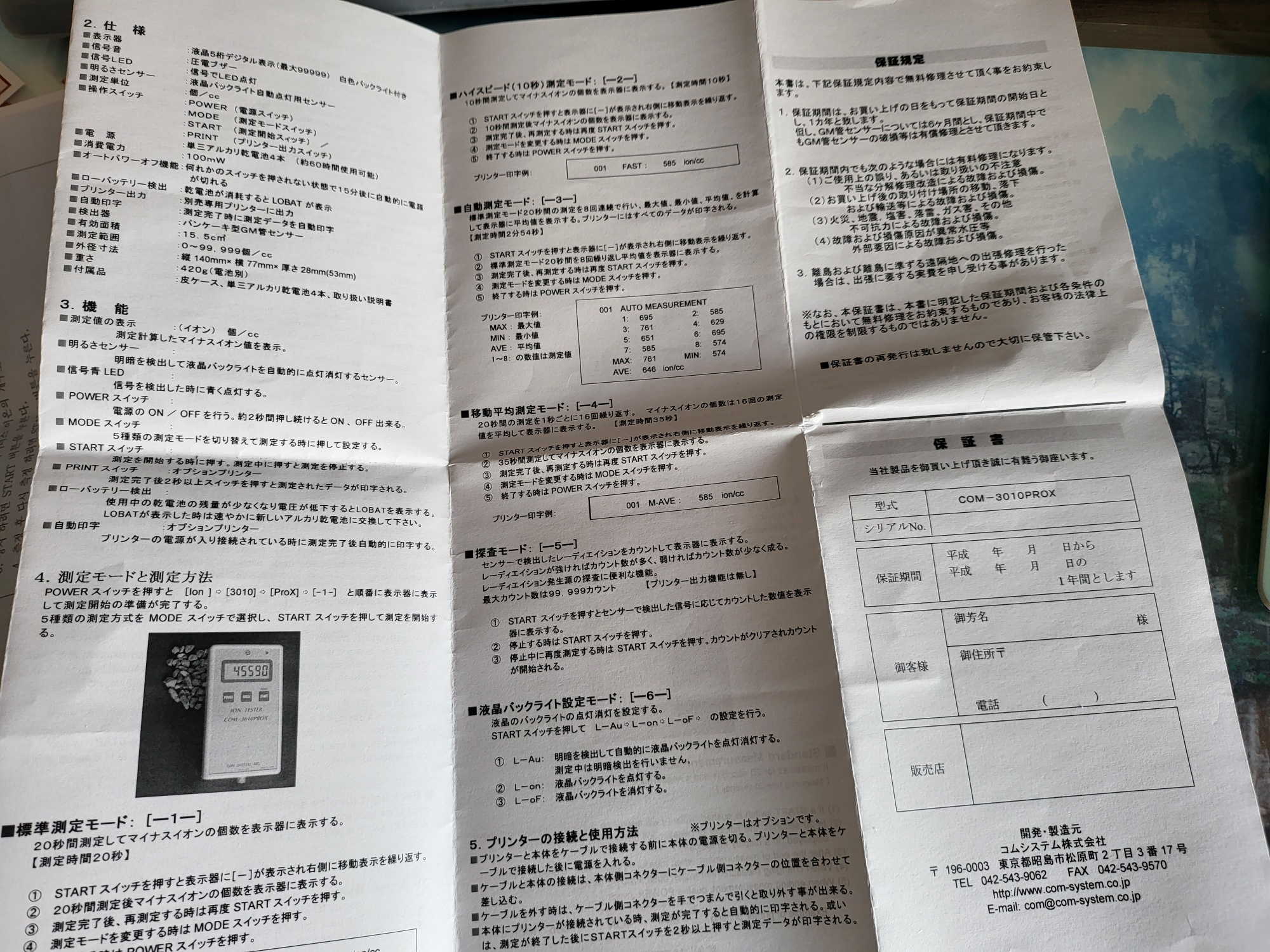 모델명 : 음이온 측정기 COM-3010 PROX