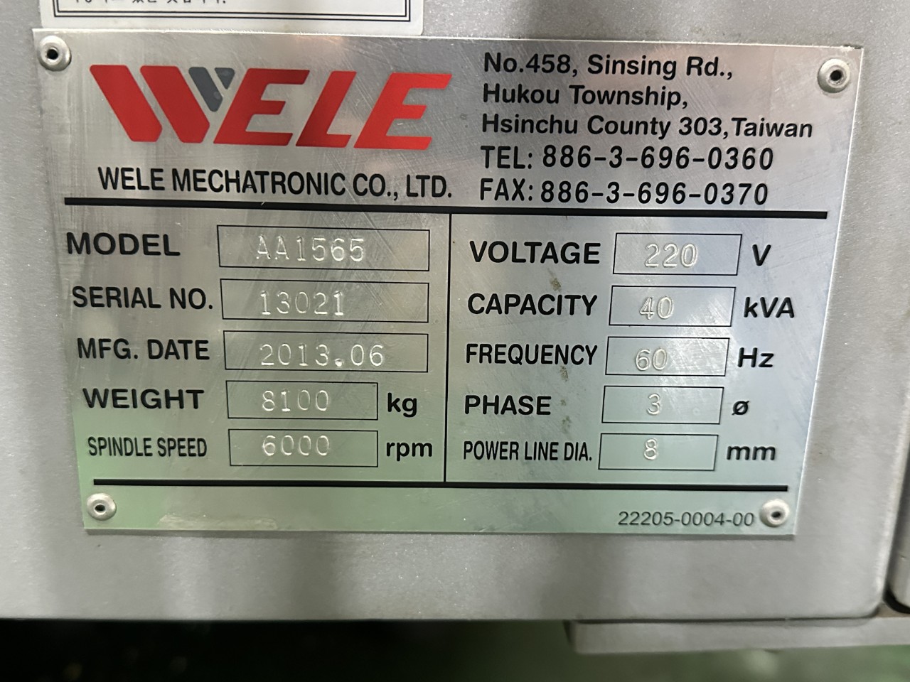 WELE 머시닝센터 6.5호기