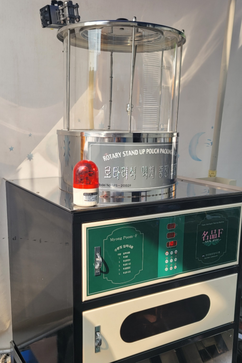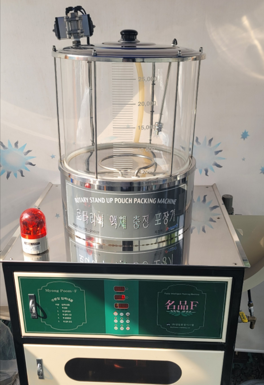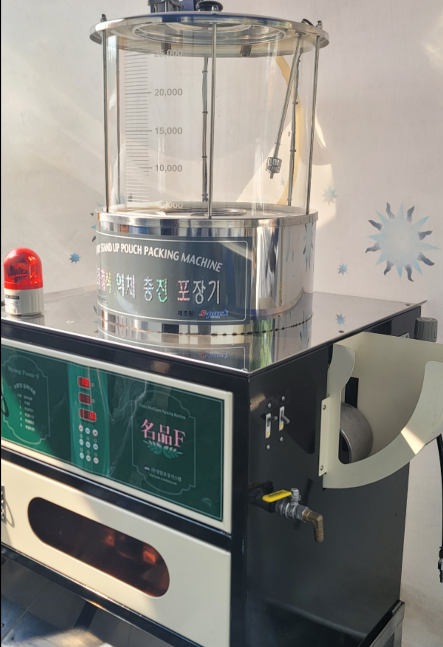 제품설명:사용하지않은 신품급으로 3대있으며 일괄구매시 네고가능합니다. 2중,3중지알루미늄재질의 스탠드타입파우치를 포장하는 최고급형 공압식 스탠딩포장이며, 공압식구동방식으로 콤프레샤가 필요함. 정량주입장치로 정확한 충진용량으로 편차 및 오차가 적음.