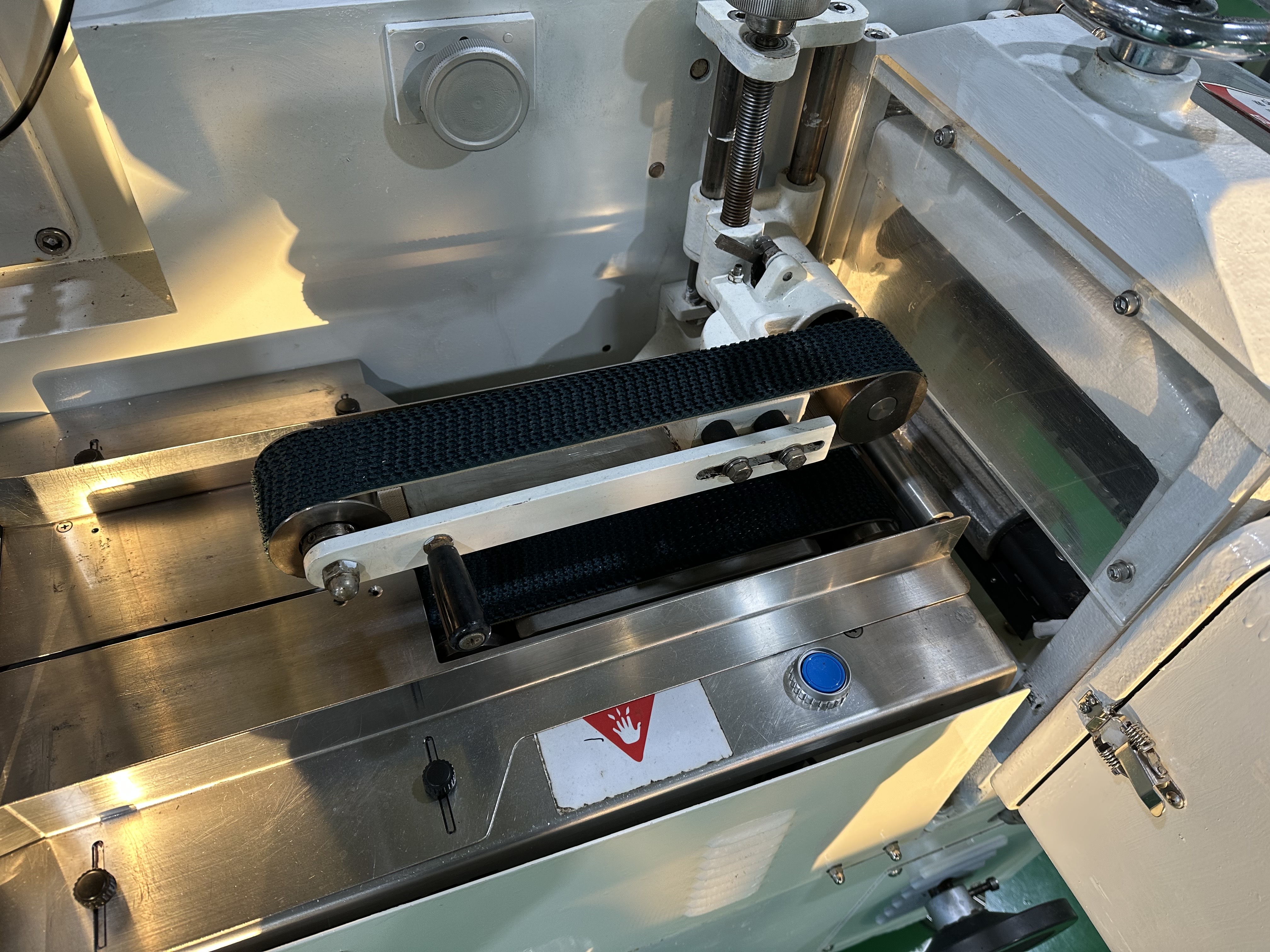 -전단 제품누름장치: 벨트방식