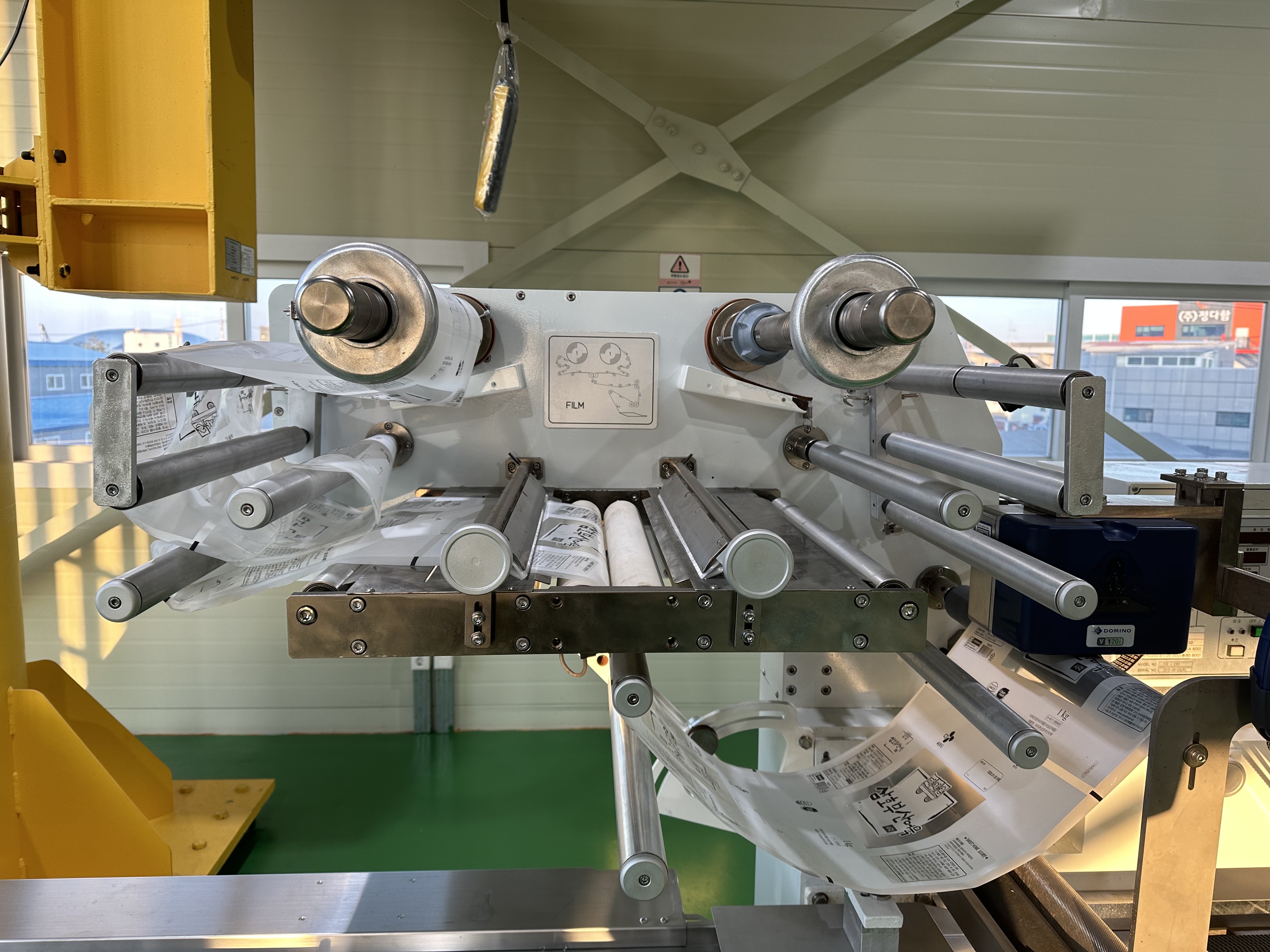 본 설비는 오퍼레이터 보는 기준 좌측에서 우측으로 진행되는 포장설비입니다.