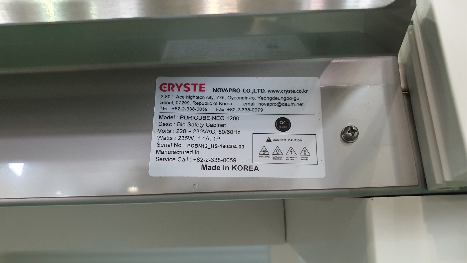 CRYSTE PURICUBE NEO 1200 Safety cabinet 생물안전작업대