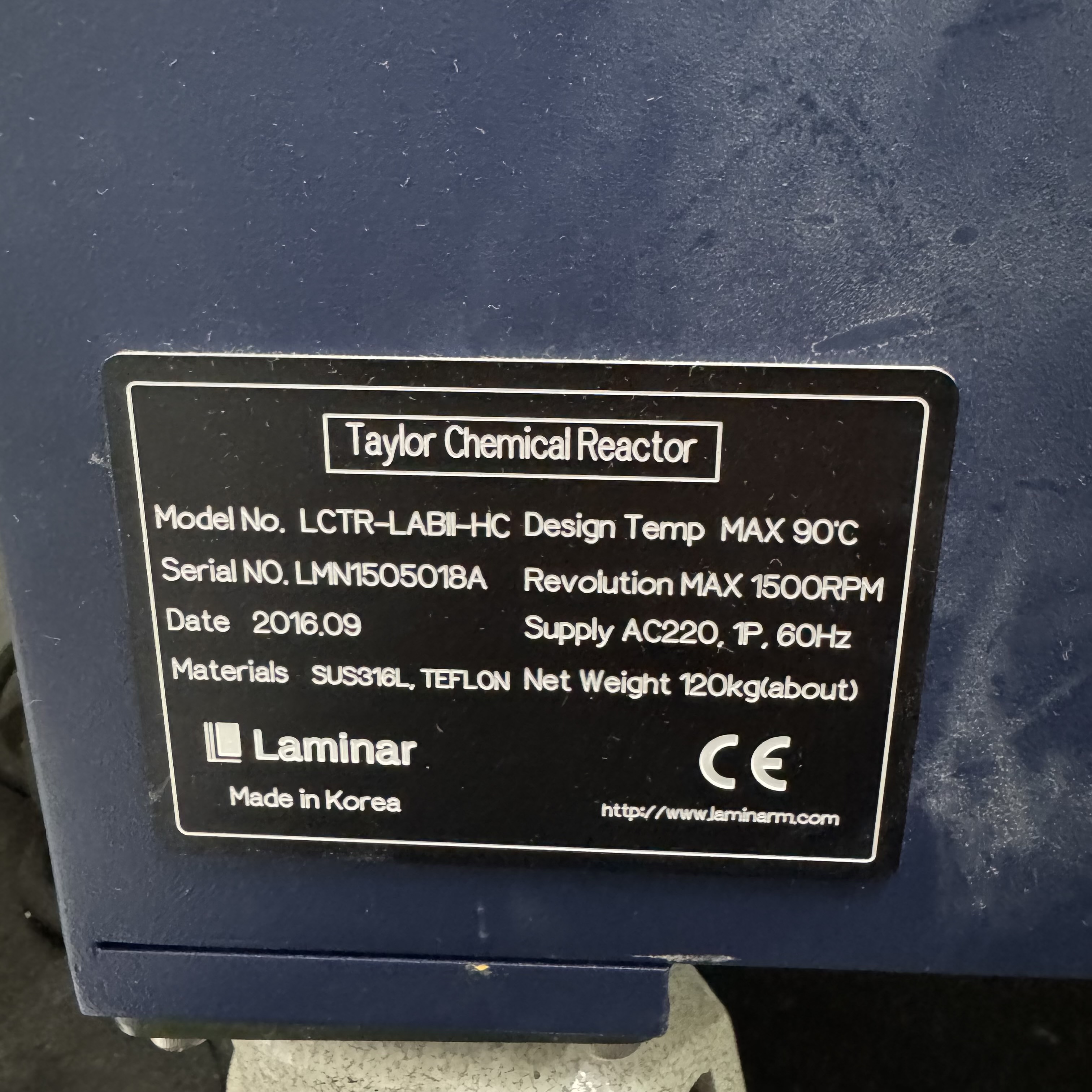 라미나 사의 LCTR-Labll-HC 테일러 반응기 입니다.
