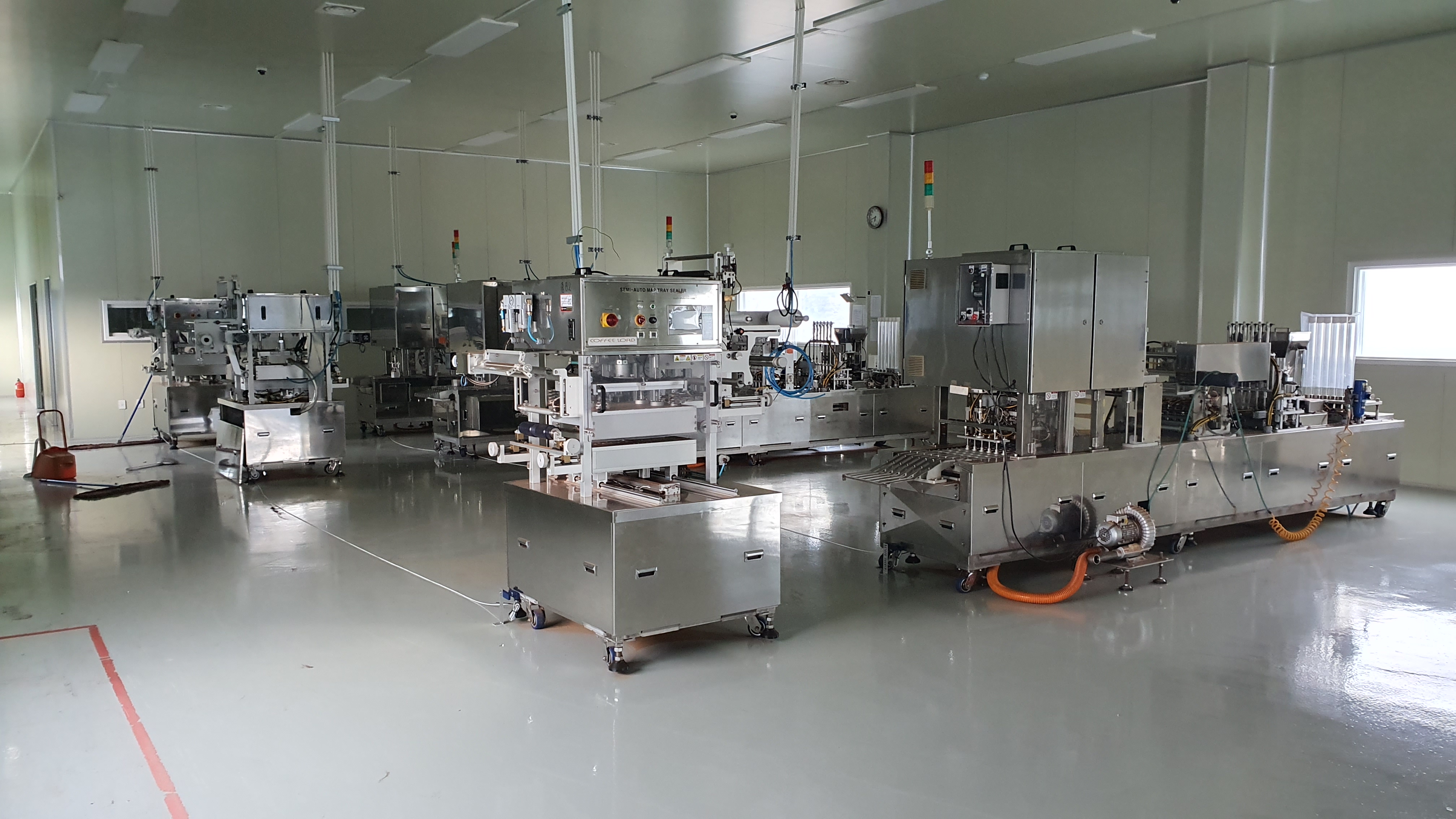 커피캡슐 충진 실링라인, 커피가루 충진 포장기, 반자동 MAP용기 포장기