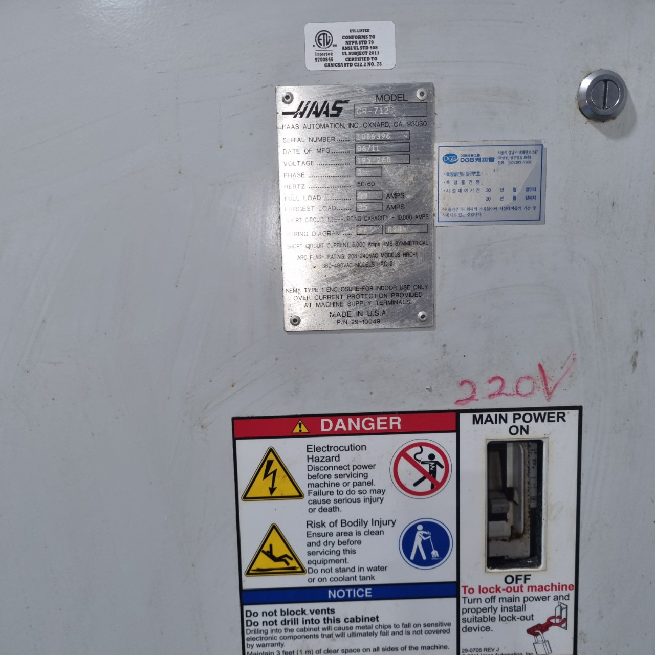 하스 GR712 CNC라우터 CNC조각기 공작기계 중고기계