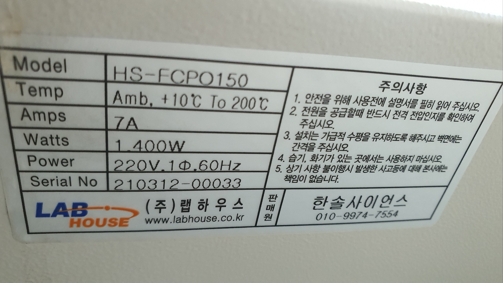 Power : 220V, 단상 , 60Hz