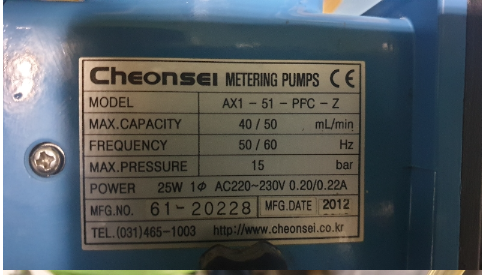 25W 1Φ AC220~230V 0.20/0.22A,50mL/min, 15bar