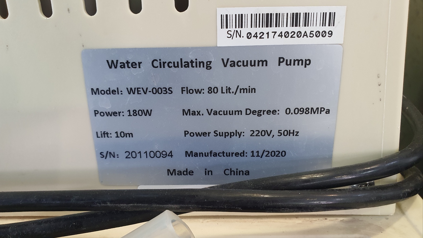 Max. Vacuum Degree : 0.098MPa