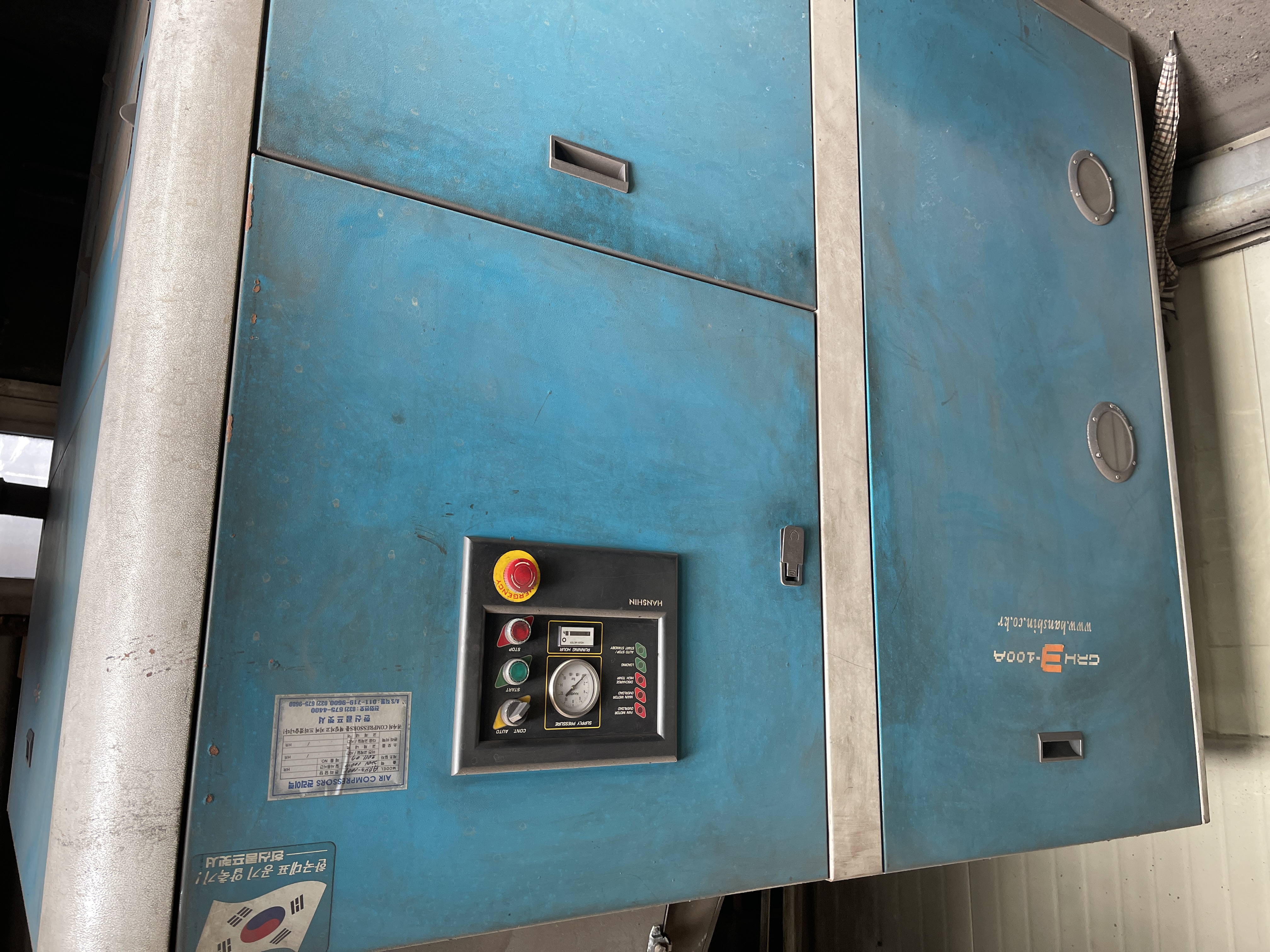 3상 220V 100마력 한신 스크류 콤프레셔 외 압력용기 드라이어 일체
