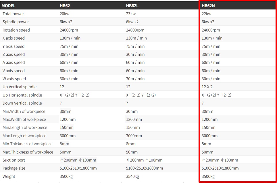 - 수직 드릴링 스핀들 : 17(12Z-7W) 수량
