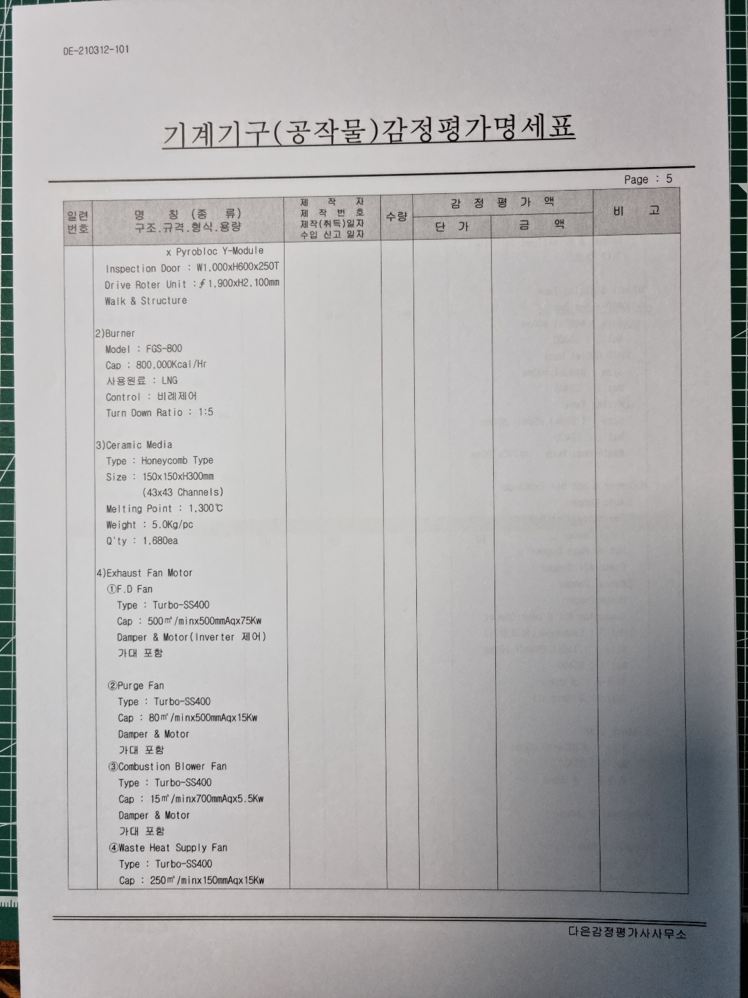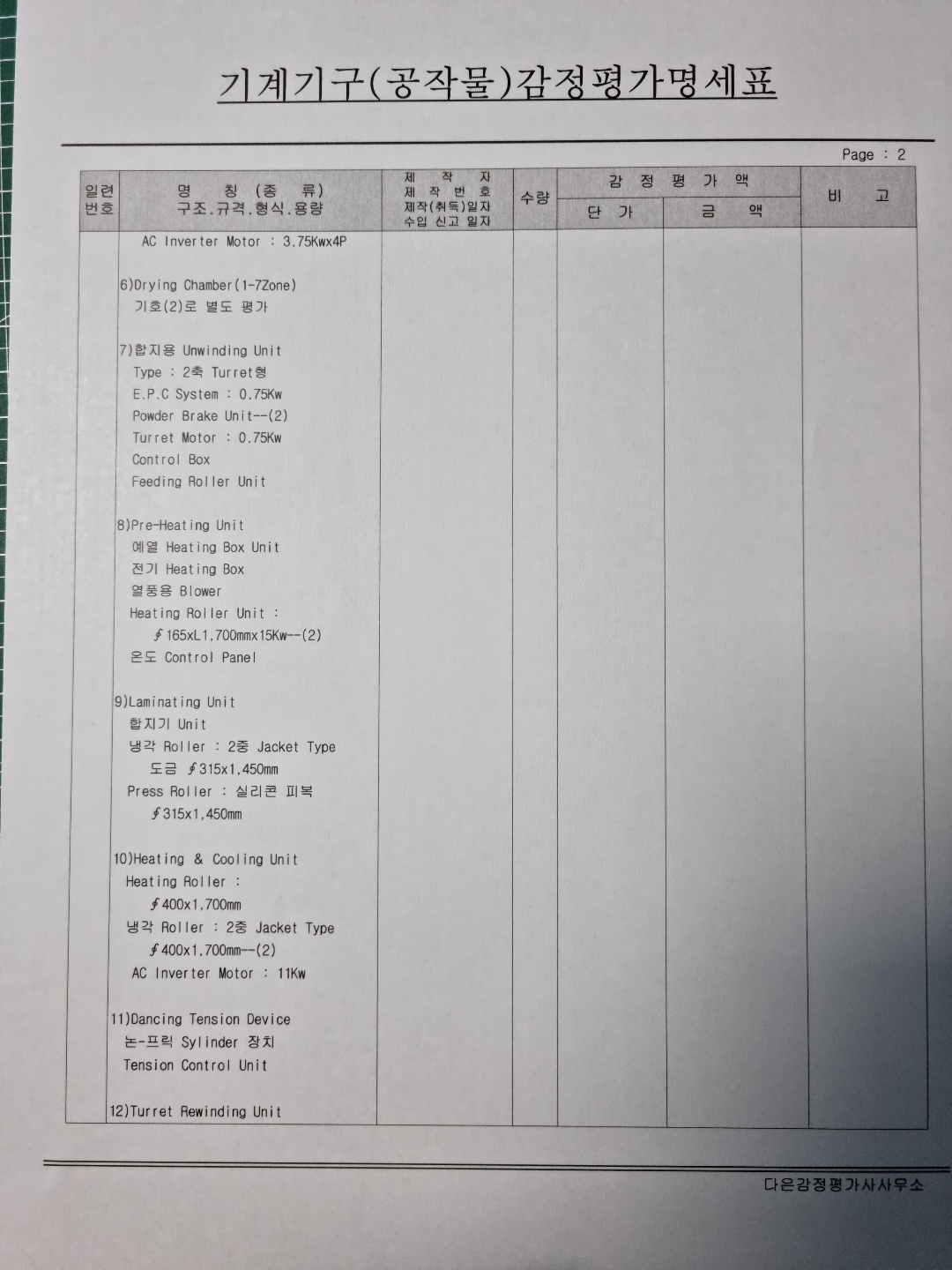 모델명 : Adhesion Sheet M/C, Dry Chamber M/C, RTO System 및