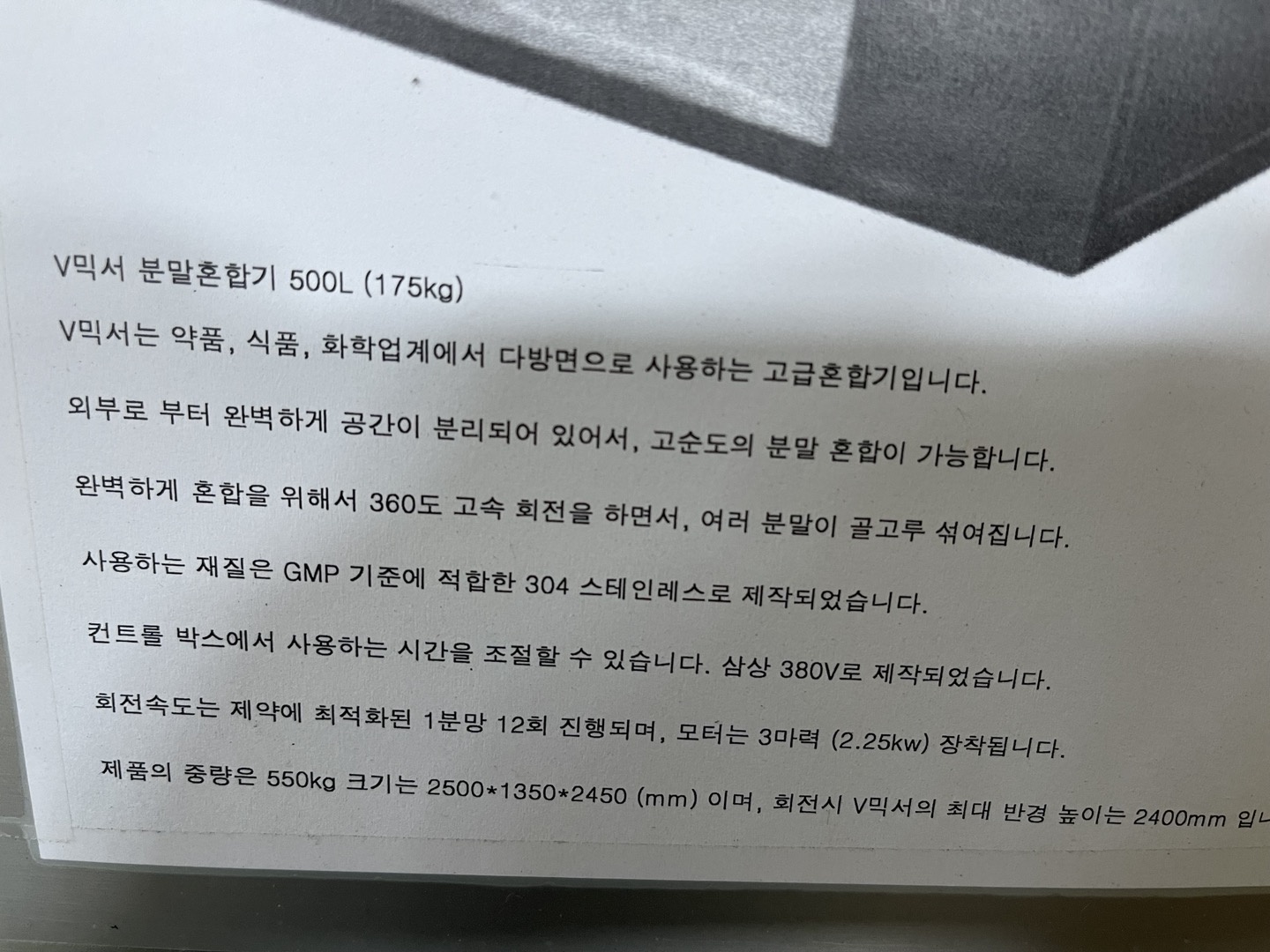 모델명 : V믹서 분말 혼합기 500L