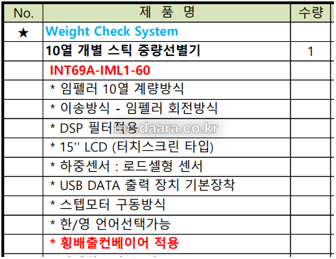모델명 : 10열 개별 스틱 중량선별기