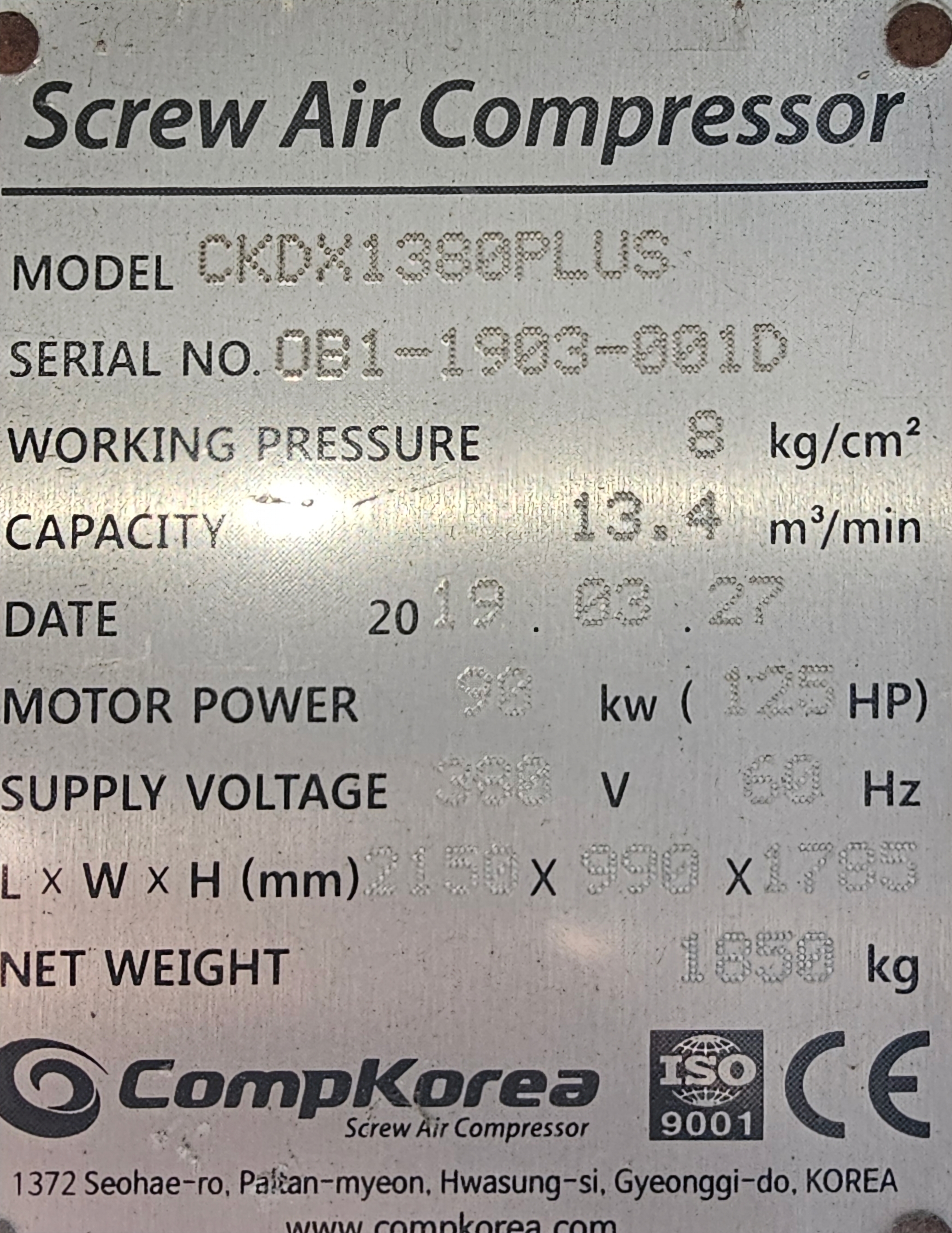 사이즈 : 1600 x 3945 L Power : 100 kW/H Press : 10 Kg/㎠