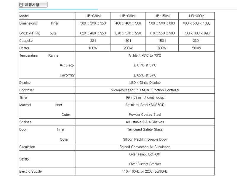 모델명 : LIB-080M, 내부크기:400-400-500