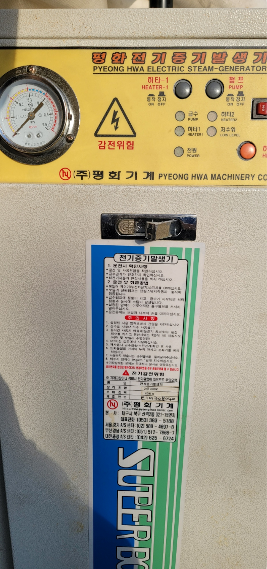 제품설명: 식품공장, 떡집, 세탁소, 만두집등 스팀이 필요한 업소나 공장에서 사용합니다. 소비전력 분할운전가능 20KW, 20KW 소비전력을 분할하여 사용가능