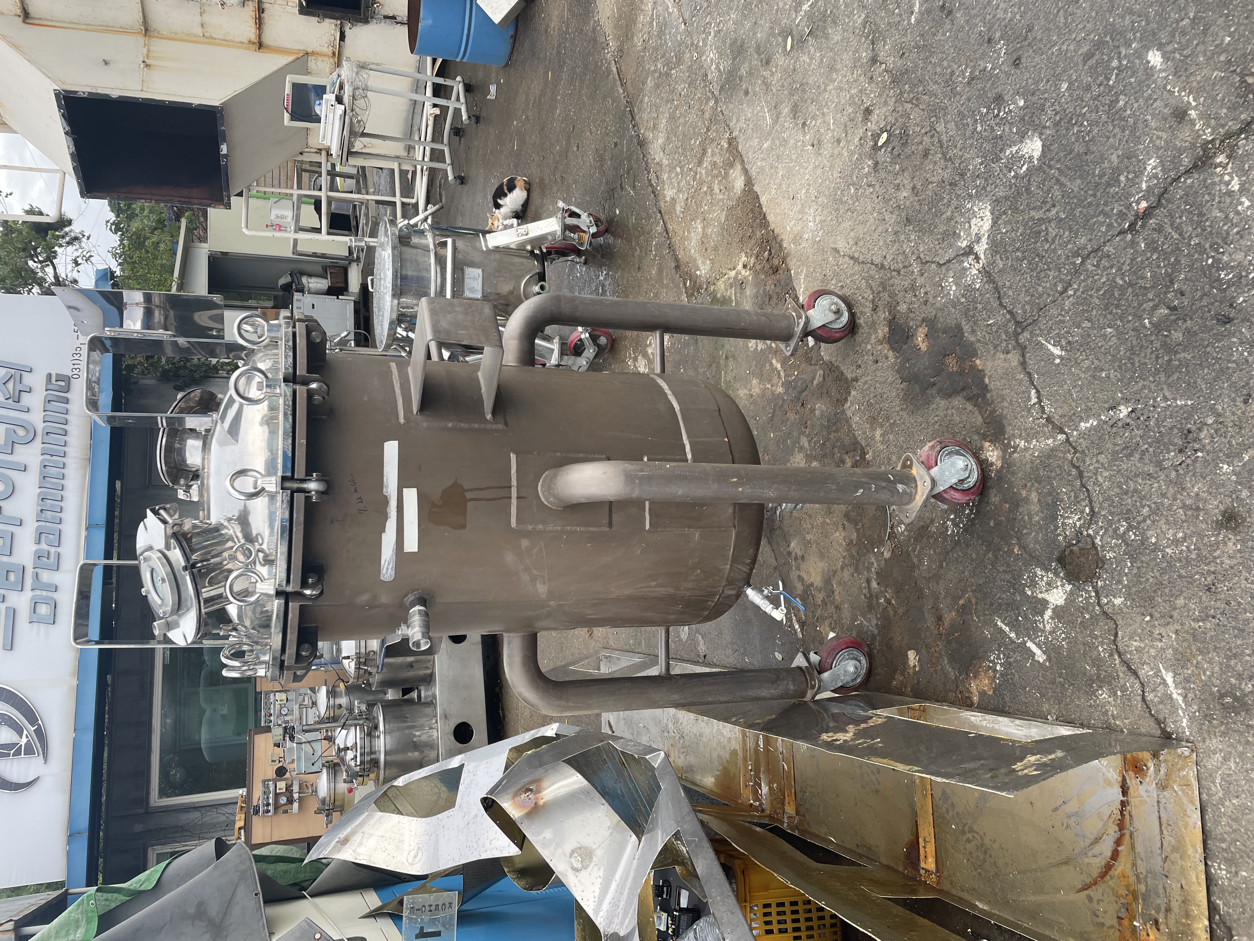 교반기 제조업체 : 재상플랜트 (A/S 가능) - 탱크 유형 : 홀탱크 (냉각, 히팅 X) - 소재 : STS316 - 규격 / 용량 : Ø840*1000 / 500L (총높이 1700mm) - 탱크 옵션 사양 : 바퀴 - 표면처리 : 버핑 500L 교반기 총 4대 판매 중입니다. 개별 구매 가능하며 1대당 가격 3,500,000원 입니다. 교반기 4대 모두 구매시 가격 절충 가능합니다.