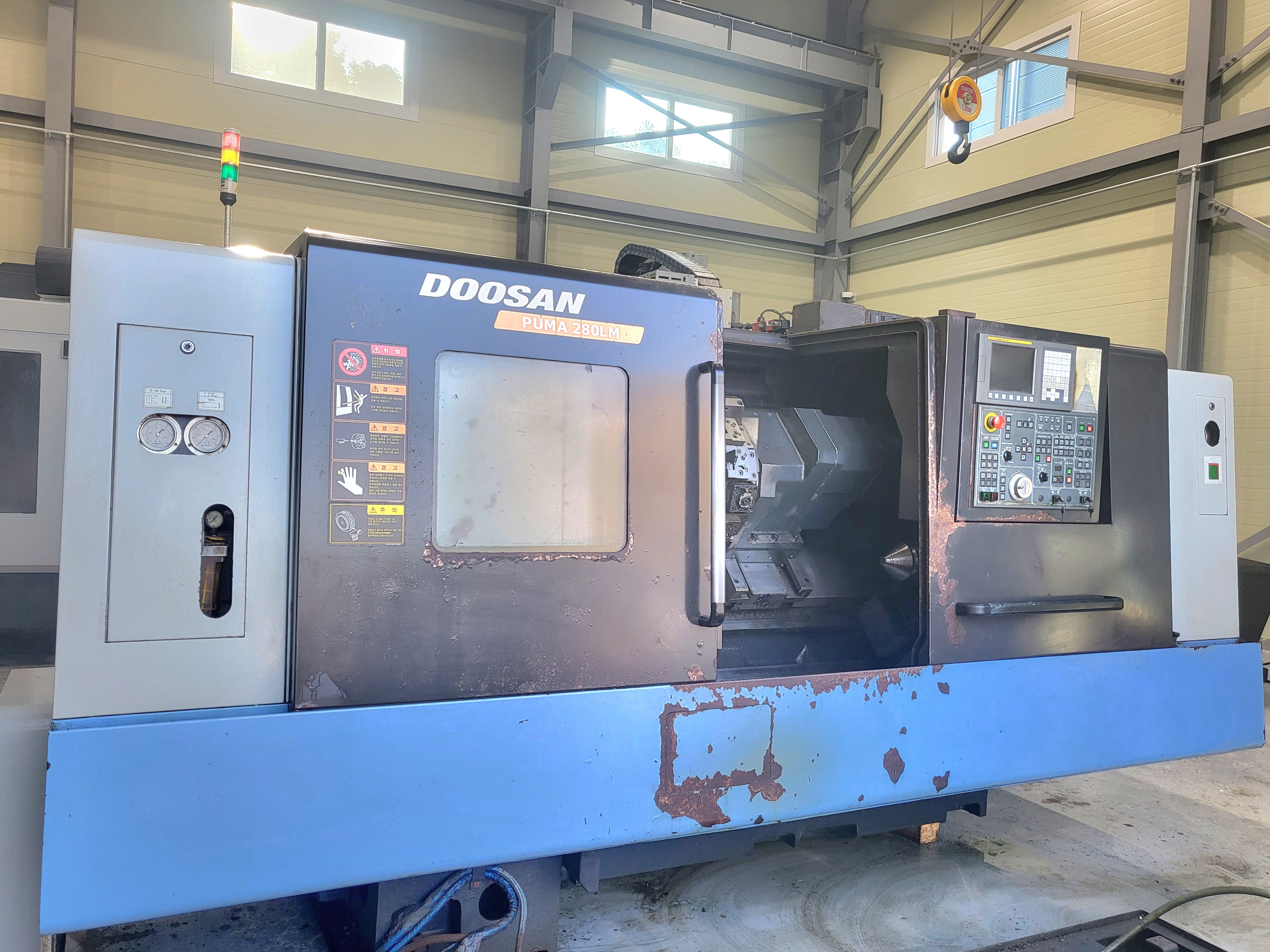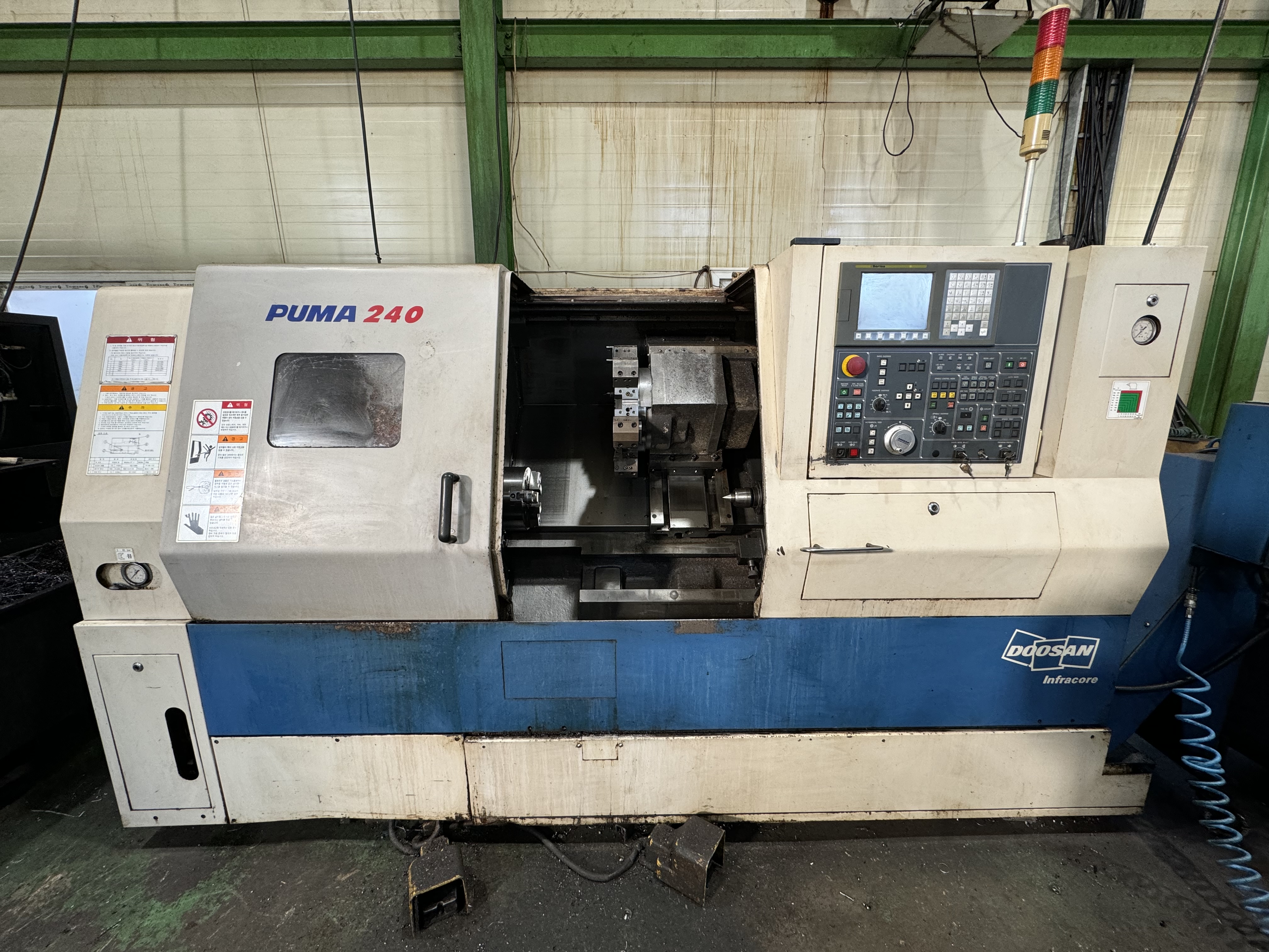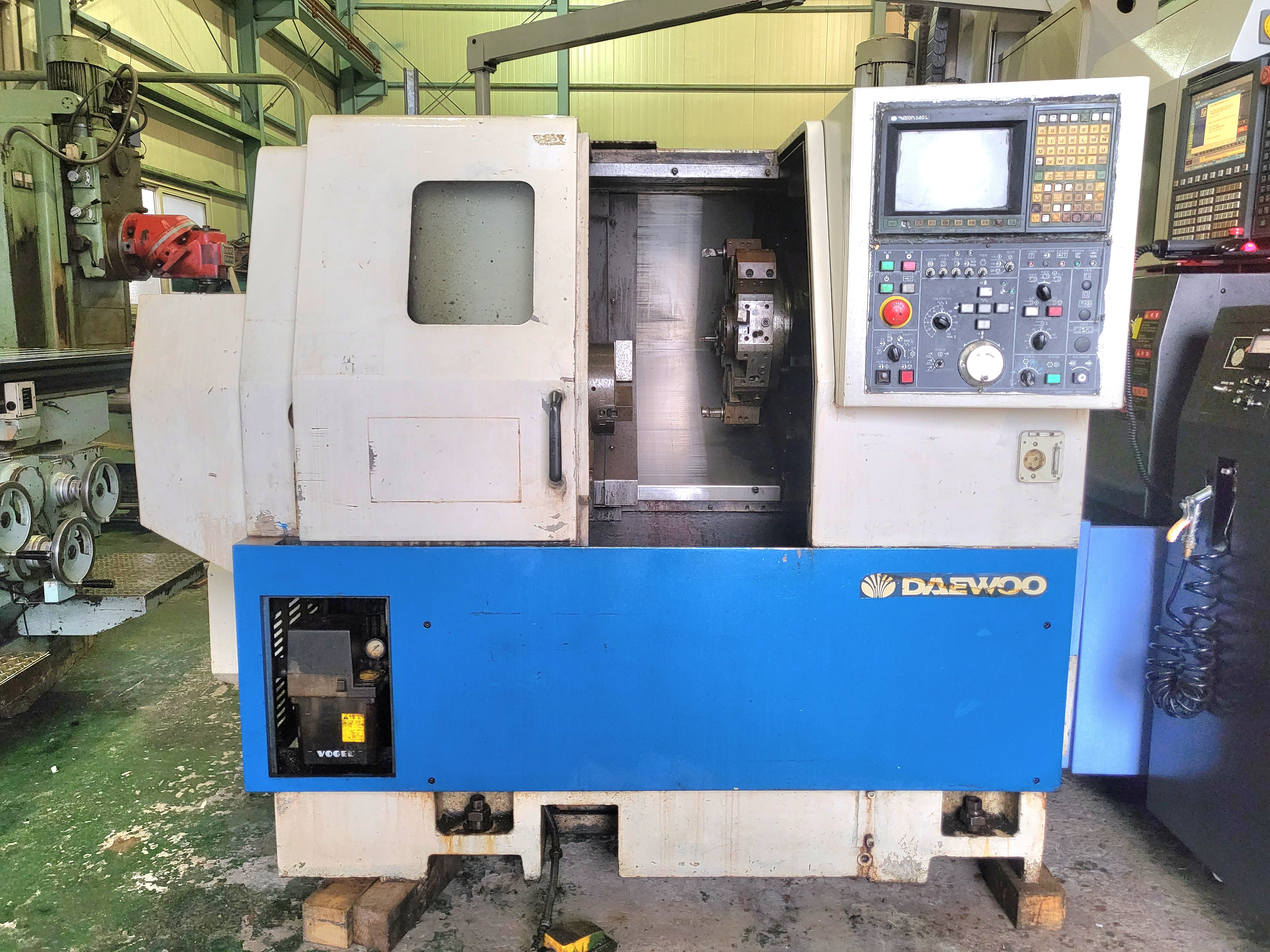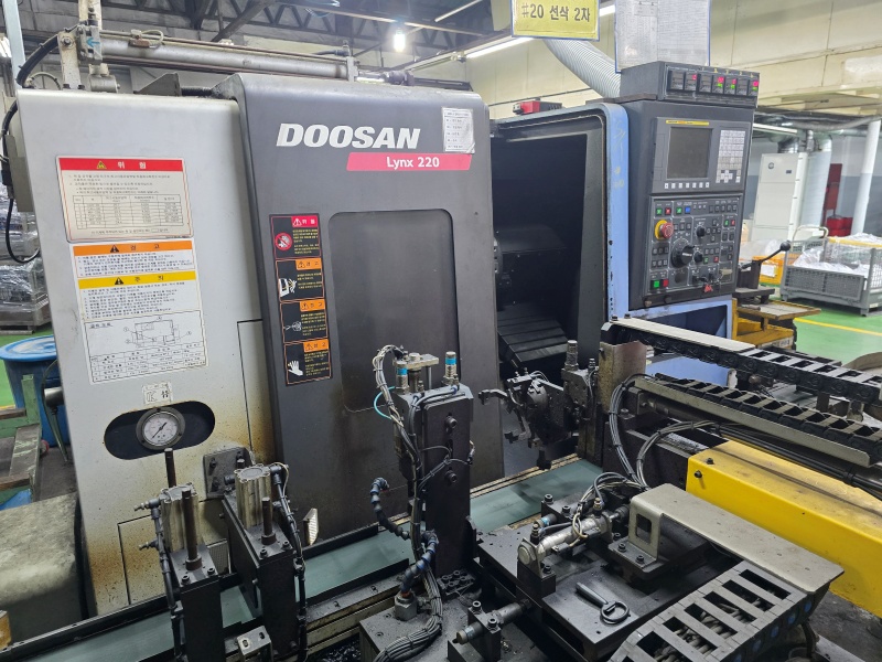 CNc선반8인치 ▣ 규격or 모델명 LYNX200B ▣ 제조회사 두산 ▣ 제작년도 2001 ▣ 판매금액 11,000,000원 ▣ 제품상세정보 칩컨베어 툴아이 기계상태 보통
