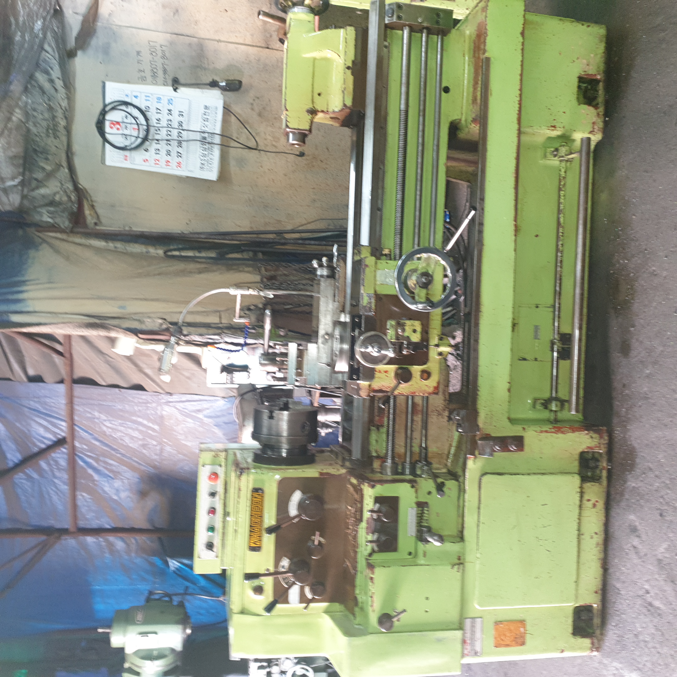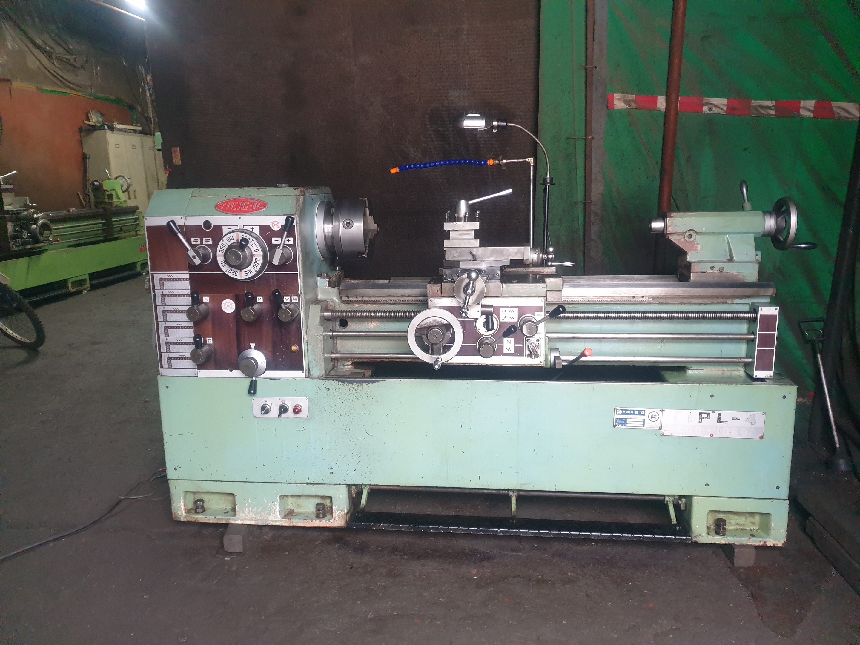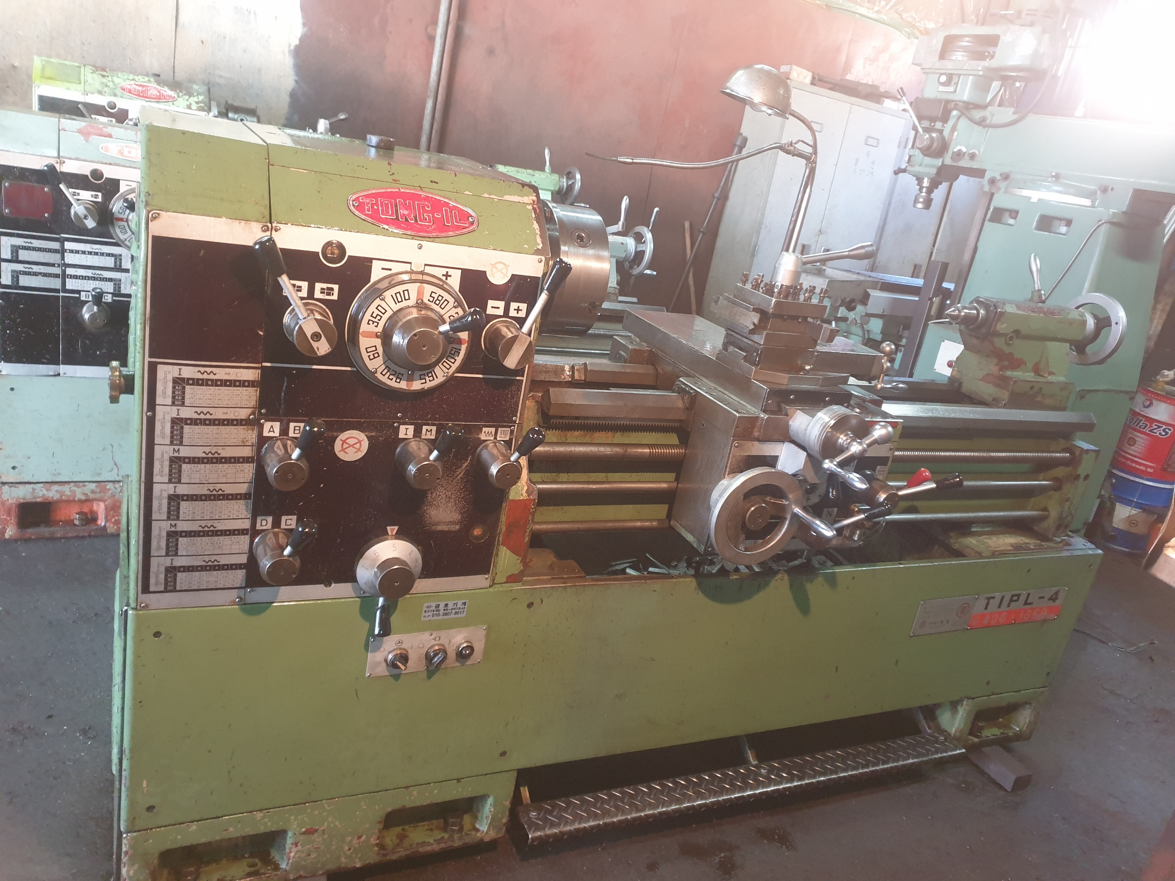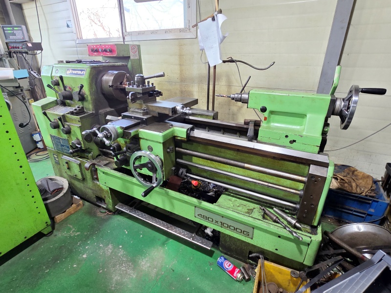 통일선반 400 * 750 1995년식 신품도장함 **전기:220V 즉시 사용가능 함 **상태:아주좋음/소음,베드상태,빽레시 **공업학교 실습용으로 사용을 많이 하지 안함** ** 척10인치(신품sc-250)** 010-5259-6051
