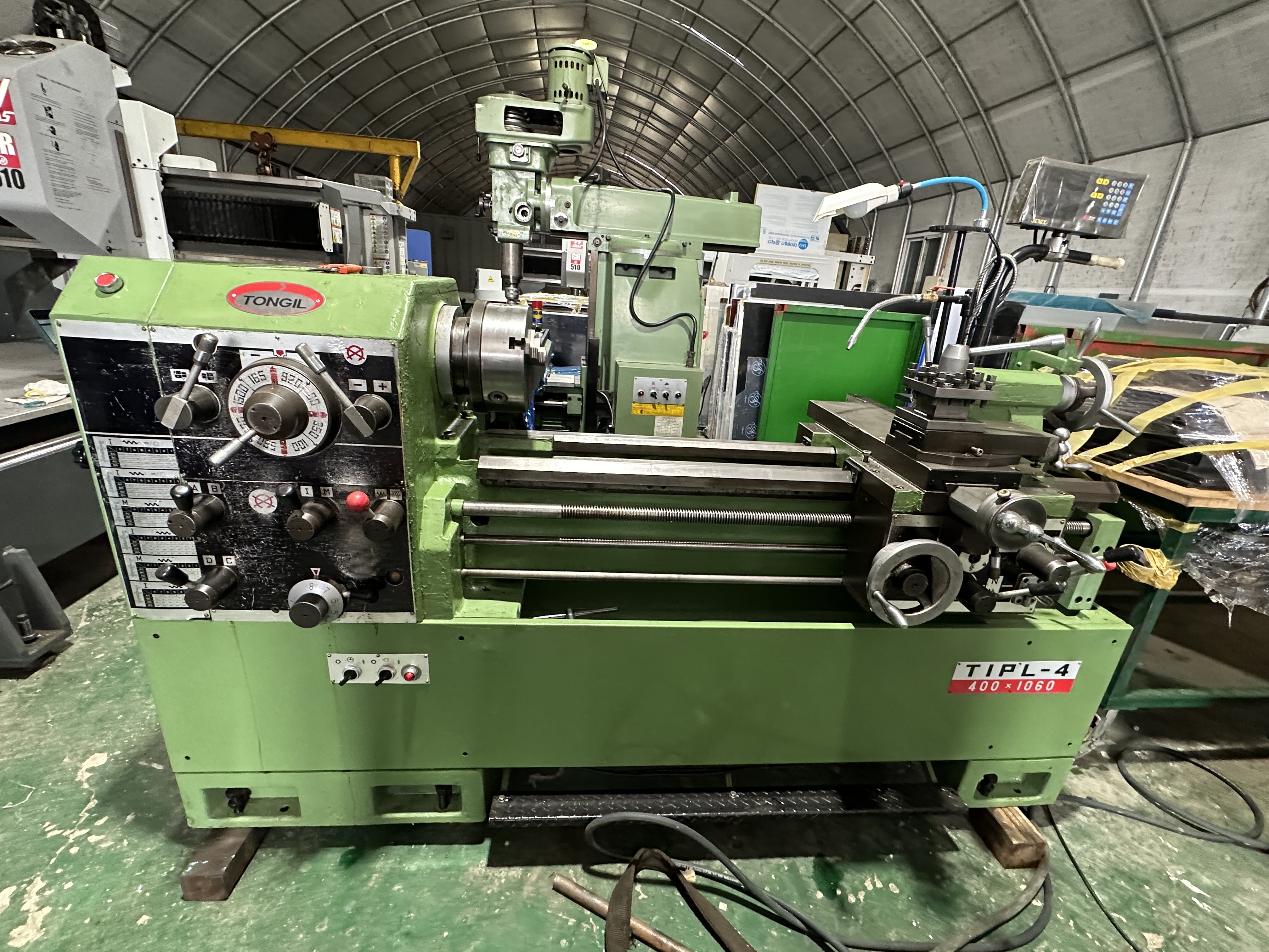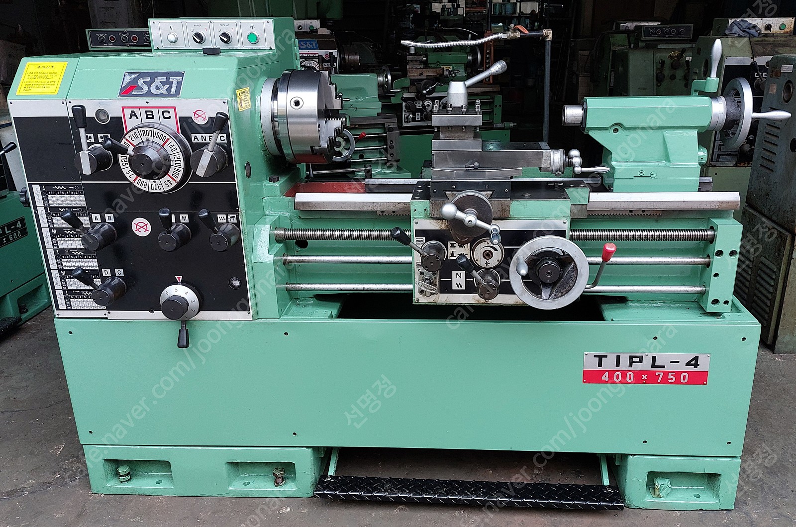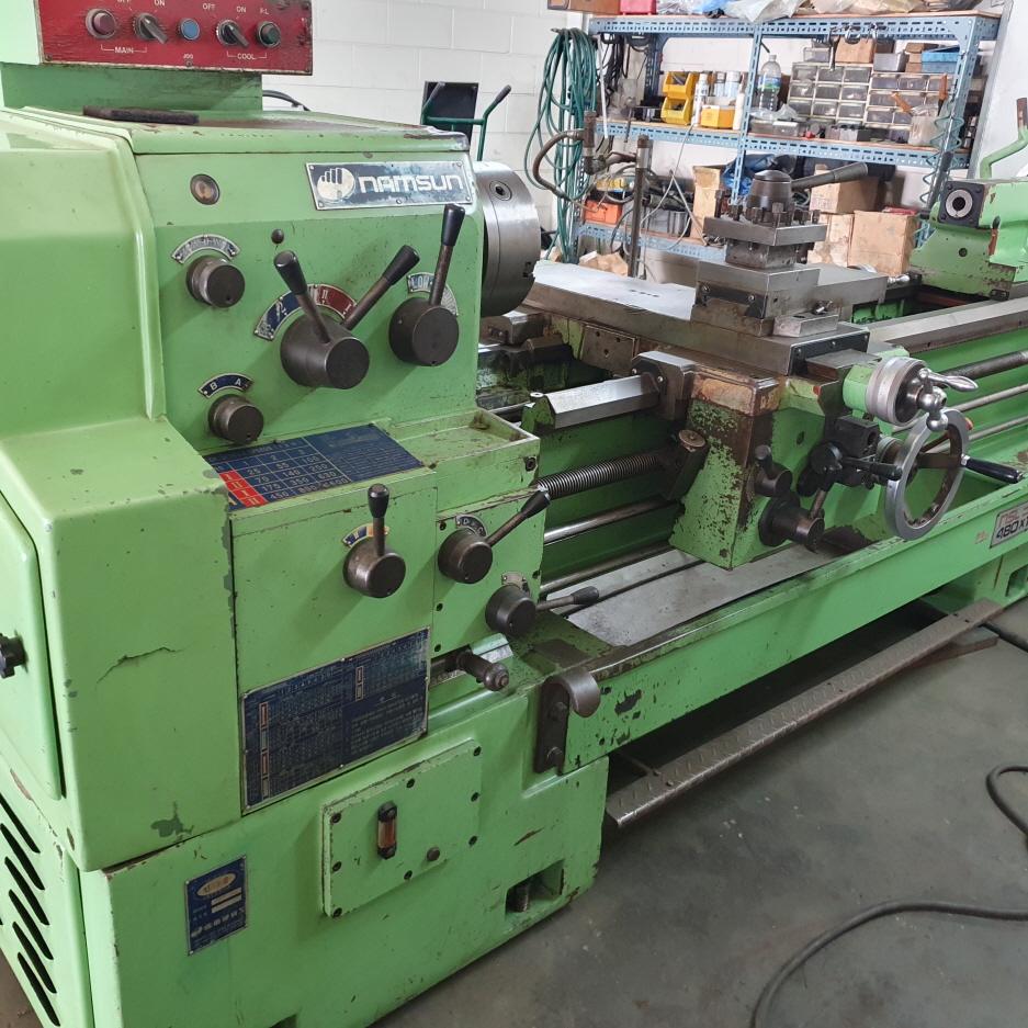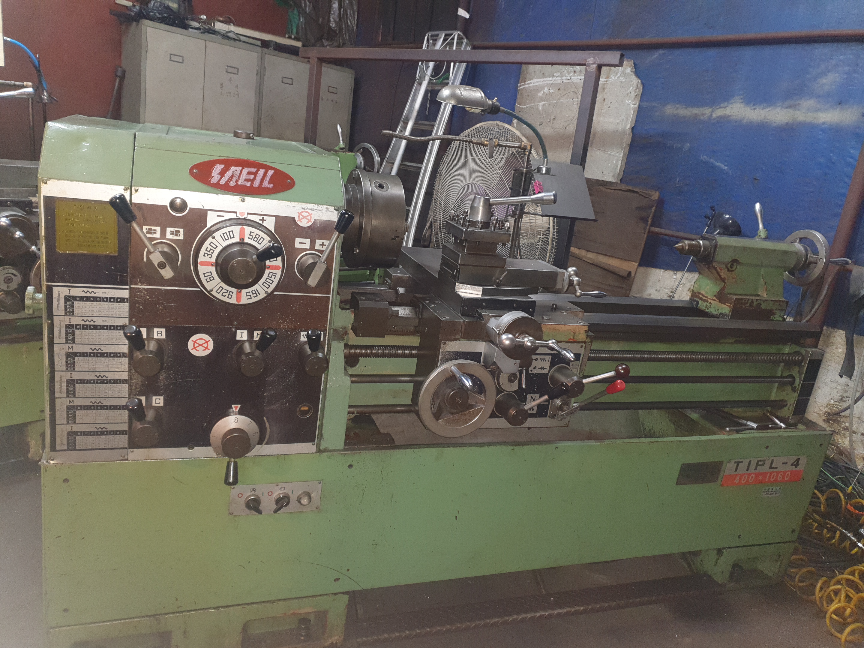 통일선반 400 * 750 1995년식 신품도장함 **전기:220V 즉시 사용가능 함 **상태:아주좋음/소음,베드상태,빽레시 **공업학교 실습용으로 사용을 많이 하지 안함** ** 척10인치(신품sc-250)** 010-5259-6051
