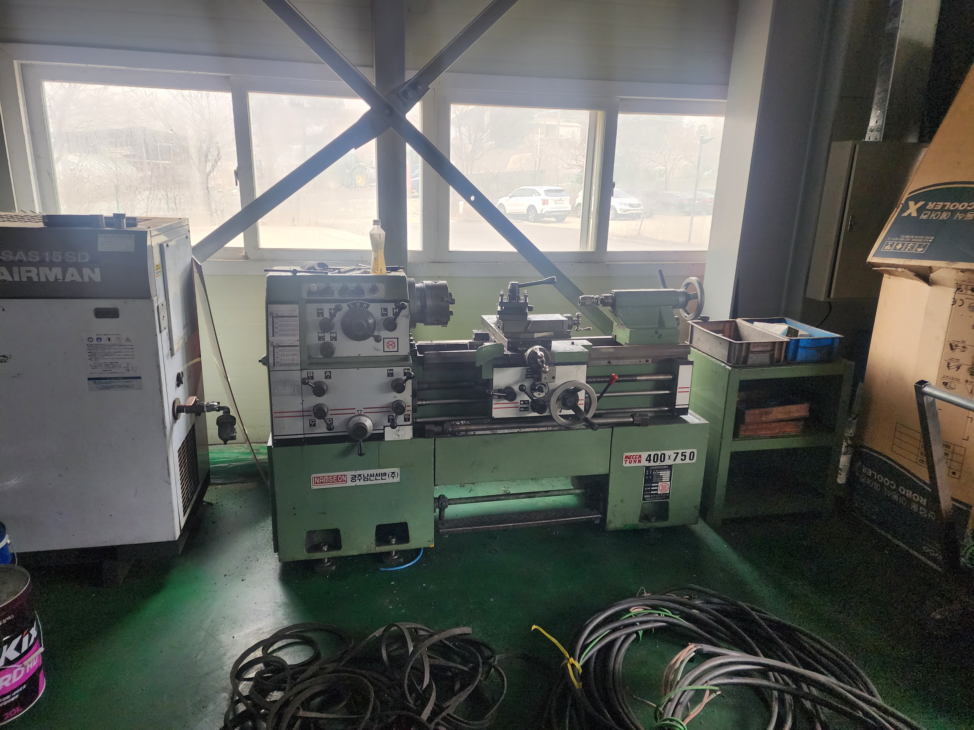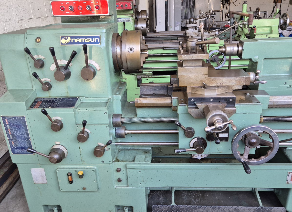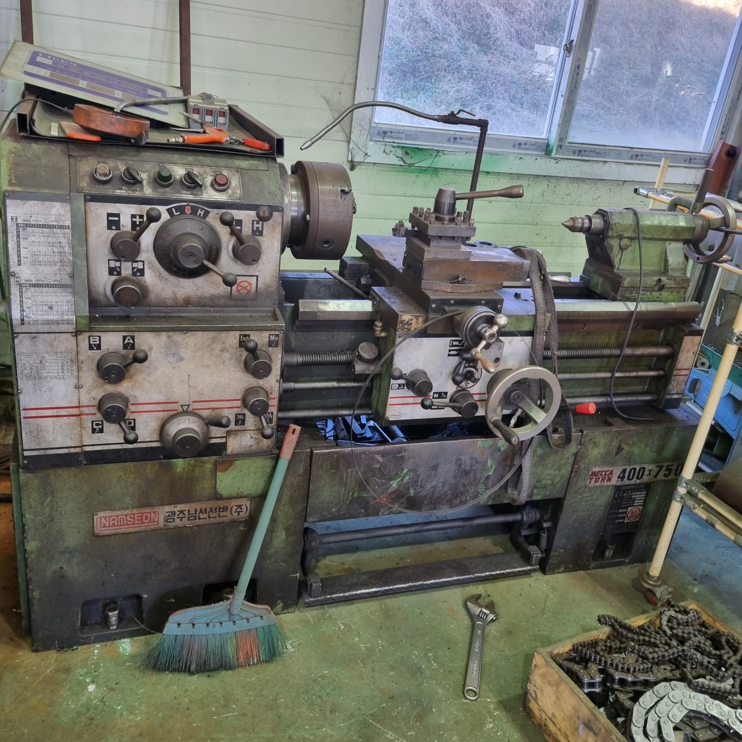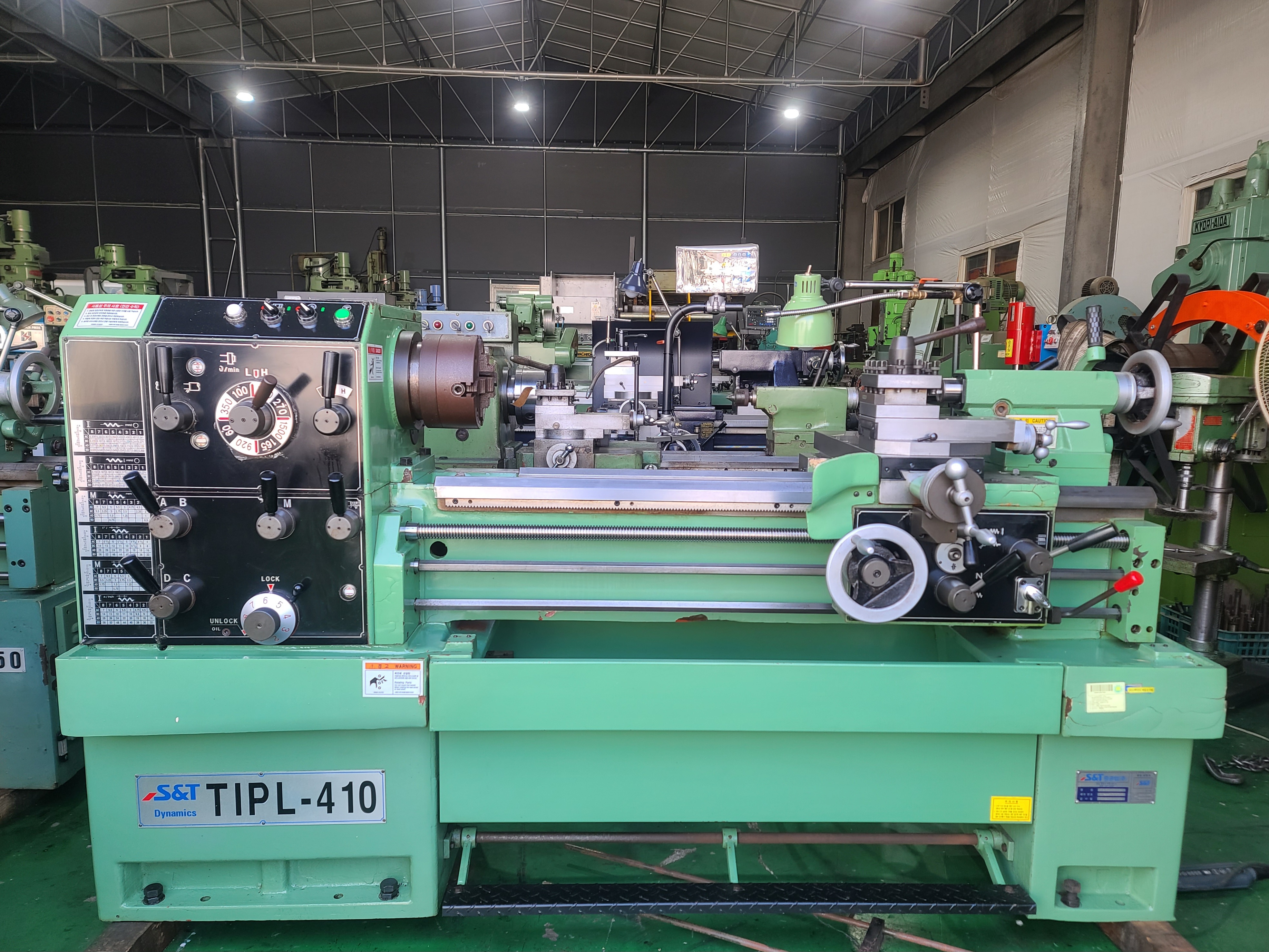 통일선반 400 * 750 1995년식 신품도장함 **전기:220V 즉시 사용가능 함 **상태:아주좋음/소음,베드상태,빽레시 **공업학교 실습용으로 사용을 많이 하지 안함** ** 척10인치(신품sc-250)** 010-5259-6051