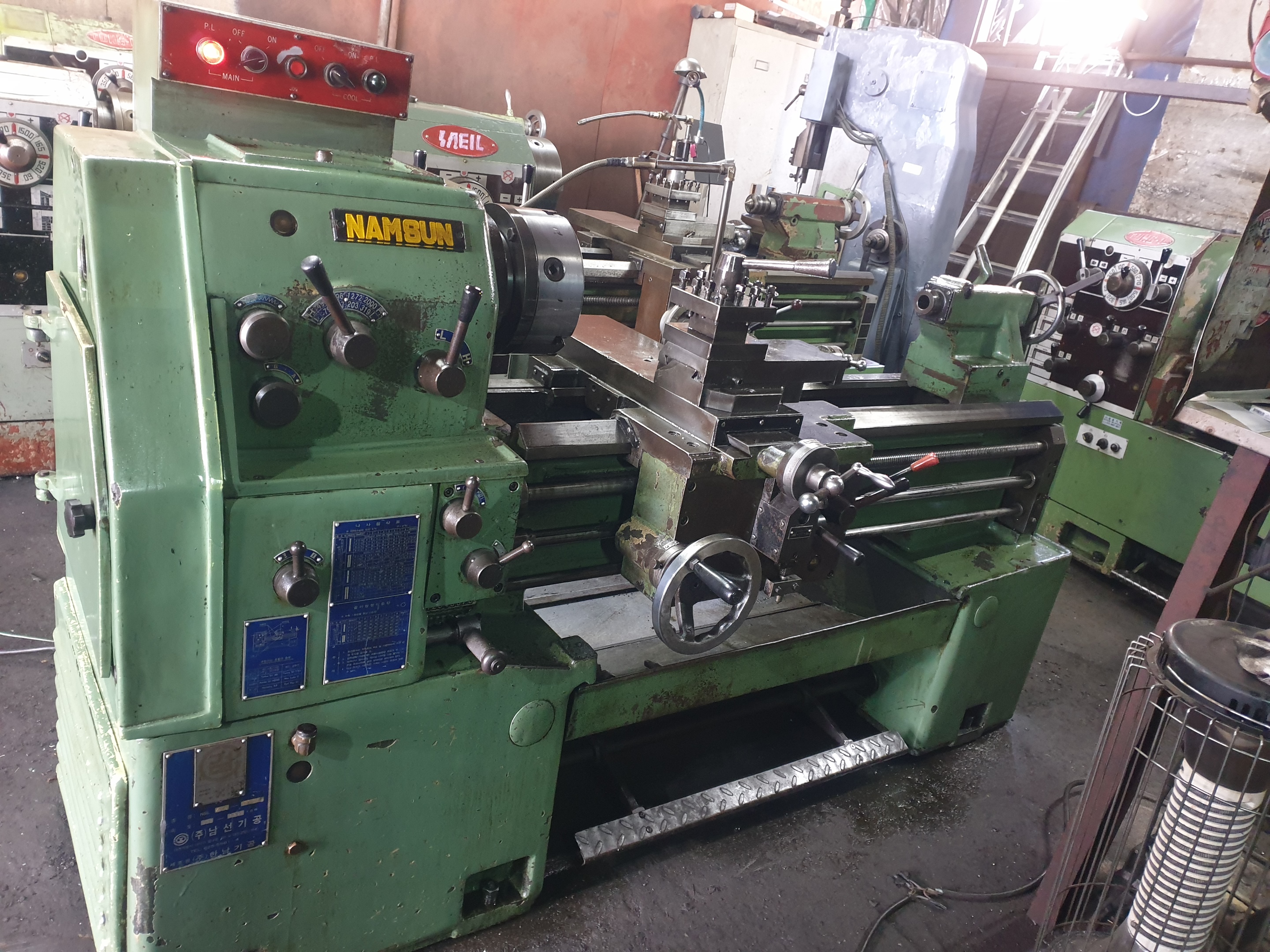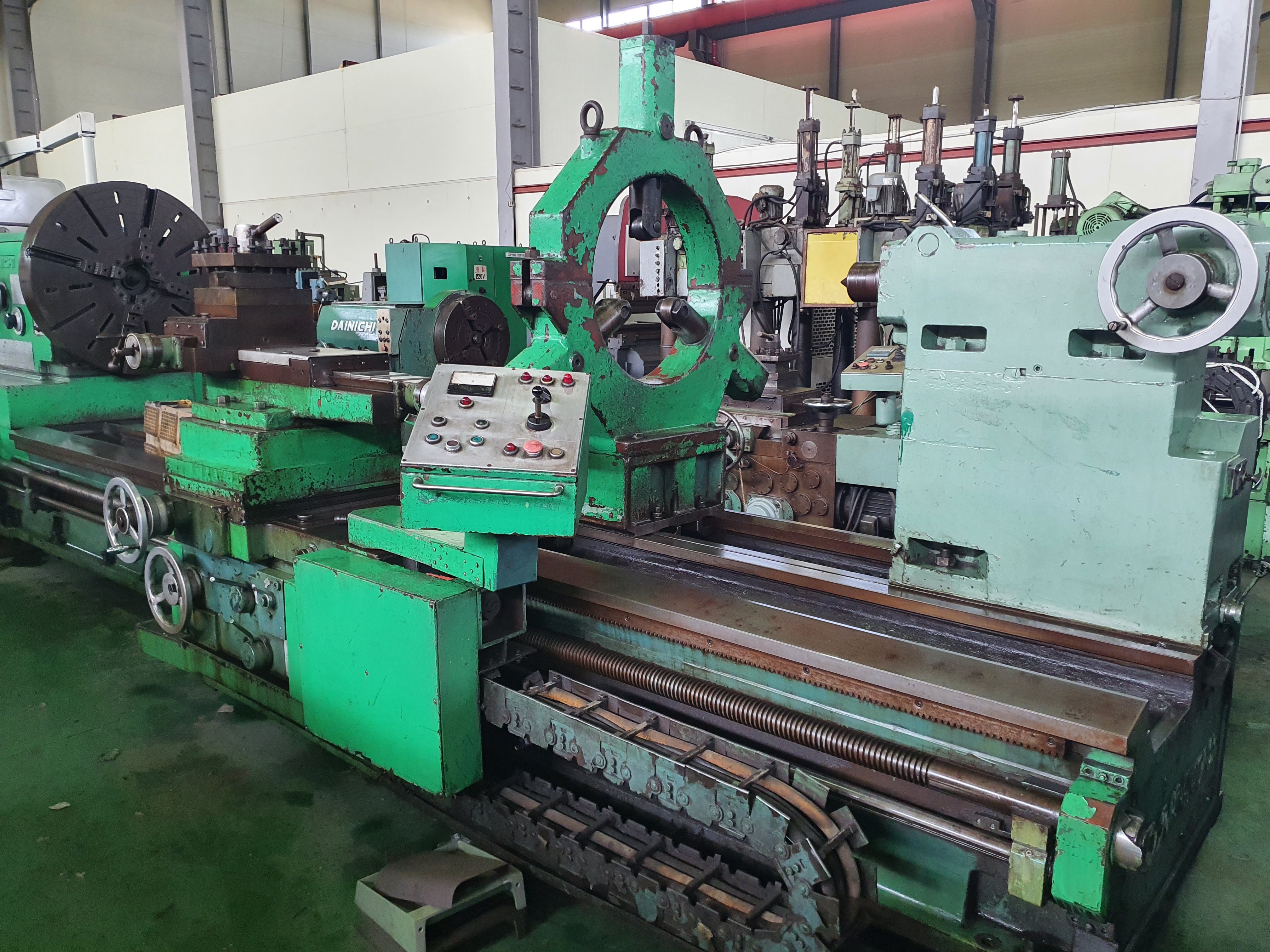 대형선반1500*4000 ▣ 규격or 모델명 1500*4000 ▣ 제조회사 다이니찌 ▣ 제작년도 ▣ 판매금액 60,000,000원 ▣ 제품상세정보 다이니찌강력선반 1200*4000 방진구 쓰리베드타입 기계상태:좋음 대기업사용
