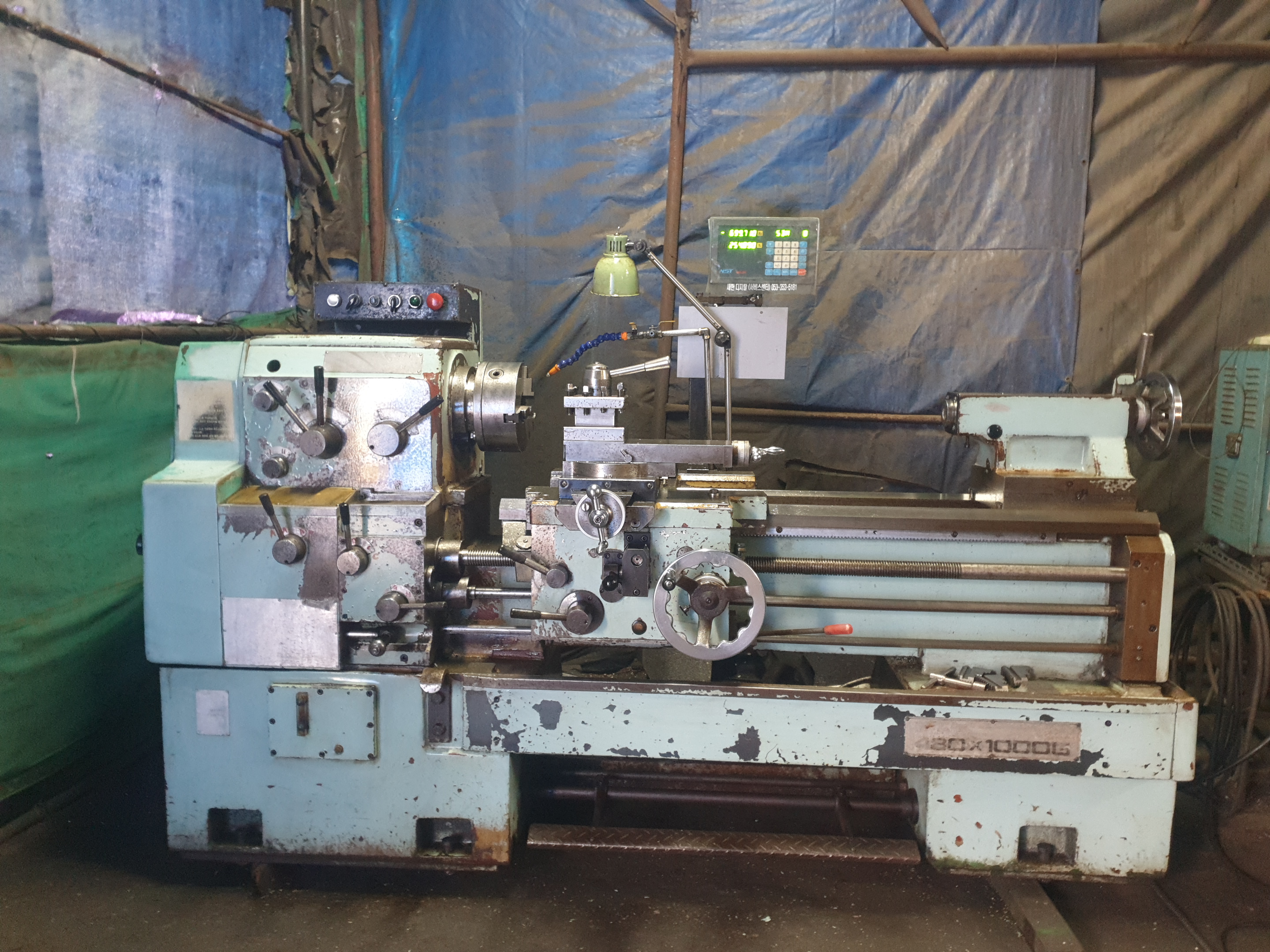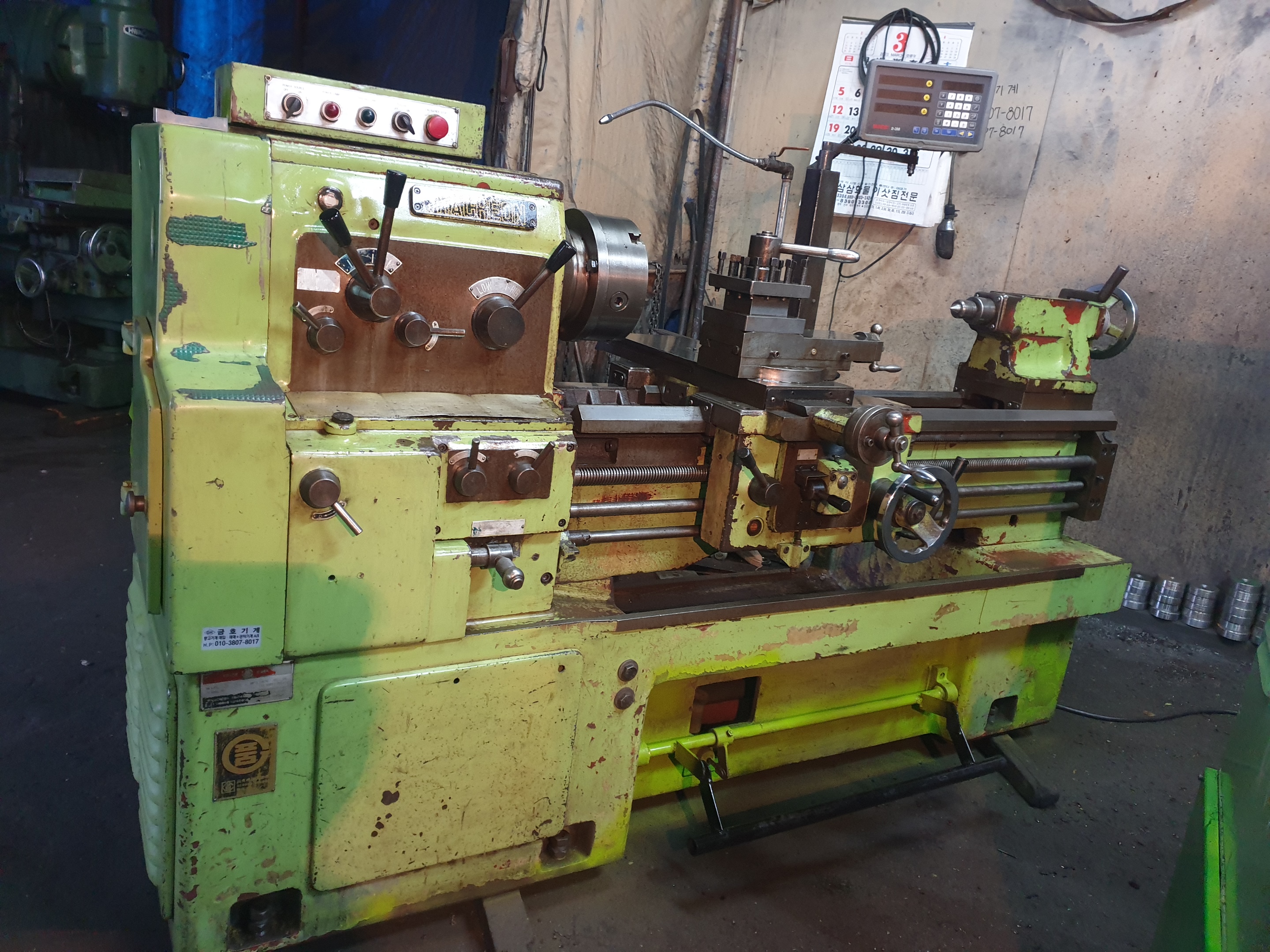 ? 화천선반 상태 신품급 460 * 1000 디지탈2축. 2015년식. 010-5259-6051 ?