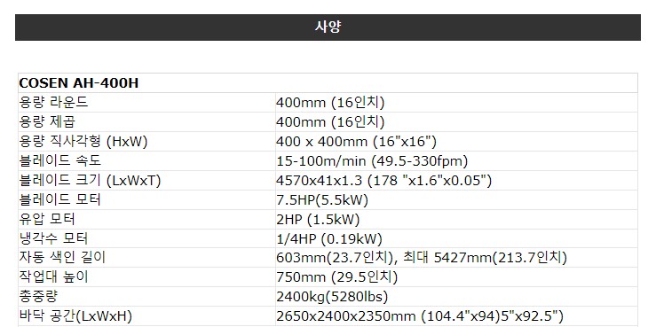 현재 판매중인 COSEN 코센 AH400H 밴드쏘 제품입니다.